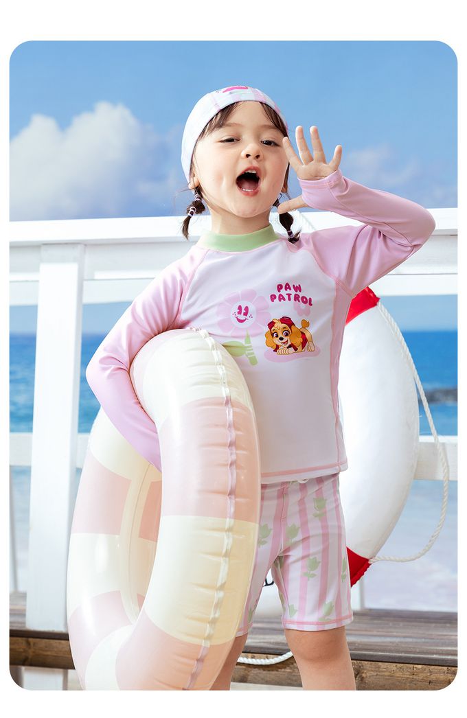 UPF50+長袖泳裝套裝(附帽子)-卡通人物天天-粉色
