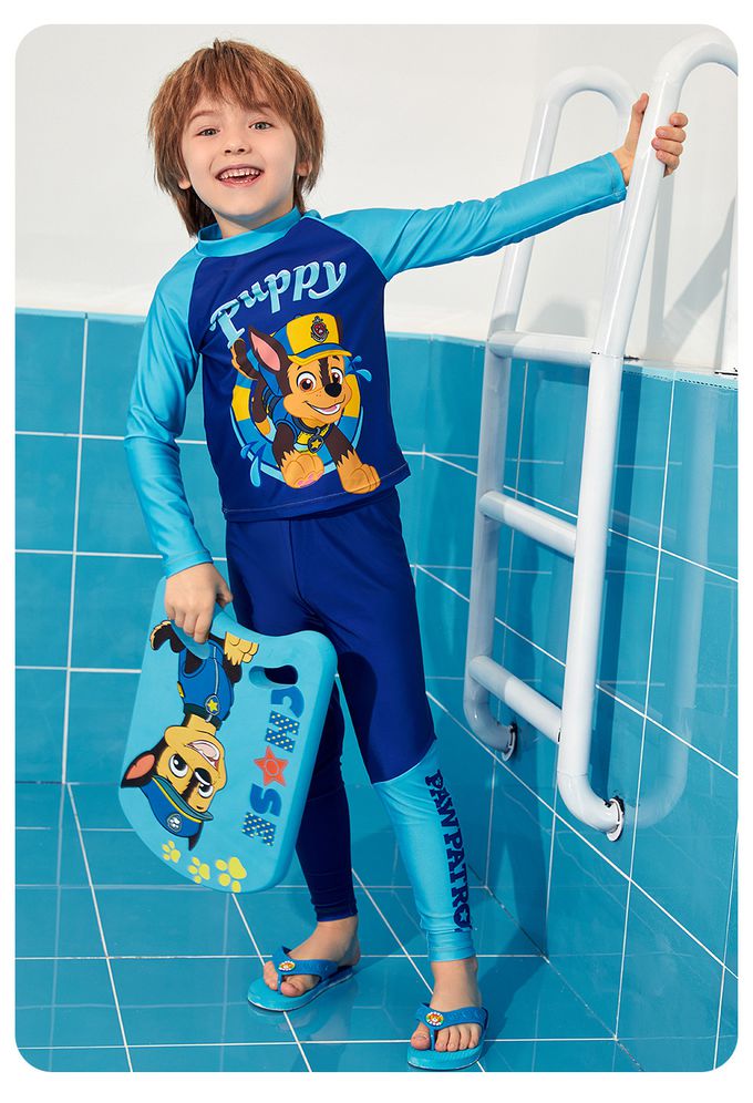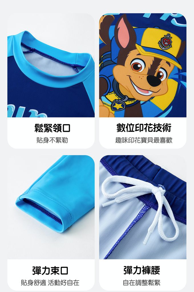UPF50+長袖泳裝套裝-卡通人物毛毛-藍色
