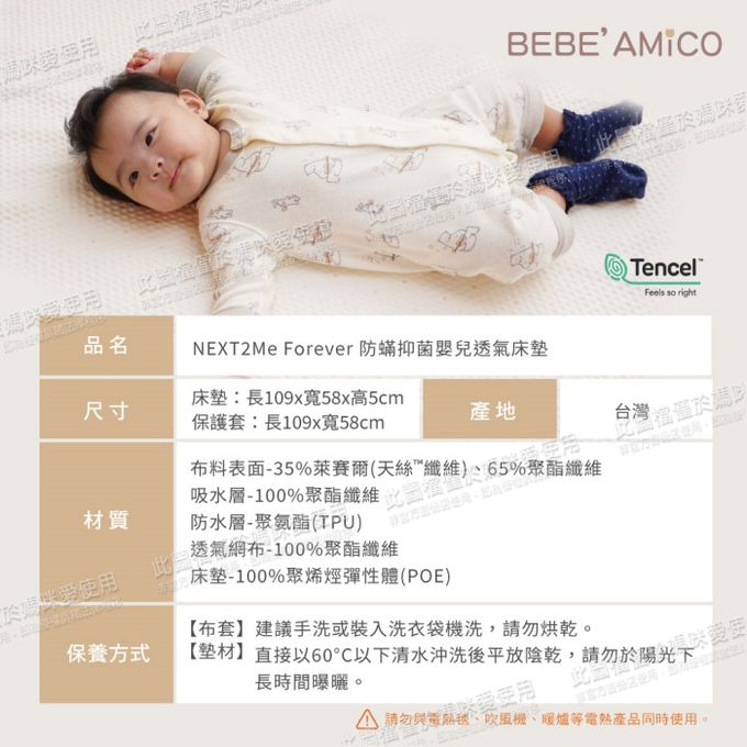 NEXT 2 Me Forever防蟎抑菌嬰兒透氣床墊(立體可水洗)-產品含POE立體編織彈力墊1組+舒柔瞬吸防水床墊保護套1組