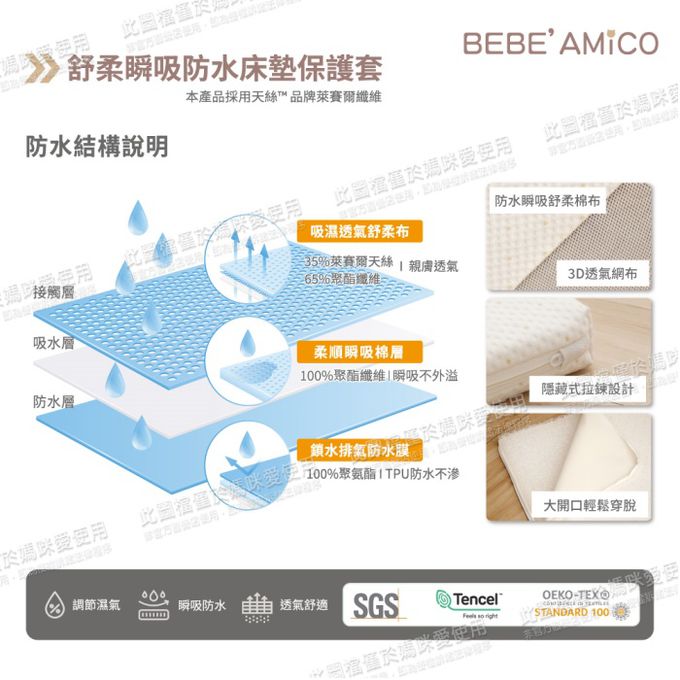 注意事項:產品含POE立體編織彈力墊1組+舒柔瞬吸防水床墊保護套1組