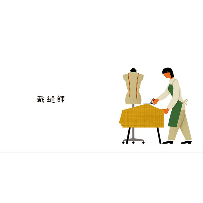 在《職人的工具》中,孩子將進入木匠、裁縫師、醫師、廚師等十種職業的世界,透過簡潔有力的圖像,觀察這些職人的「祕密武器」,理解每個行業的專業精神。