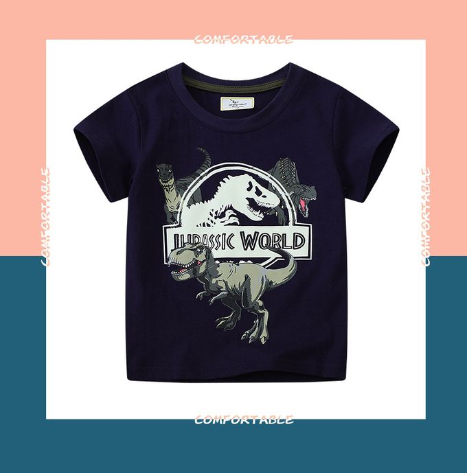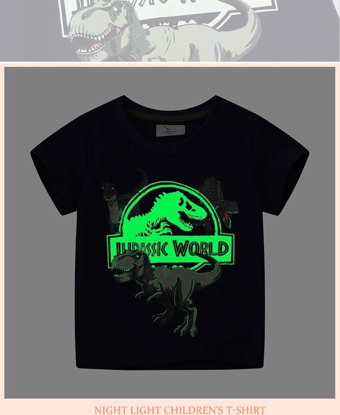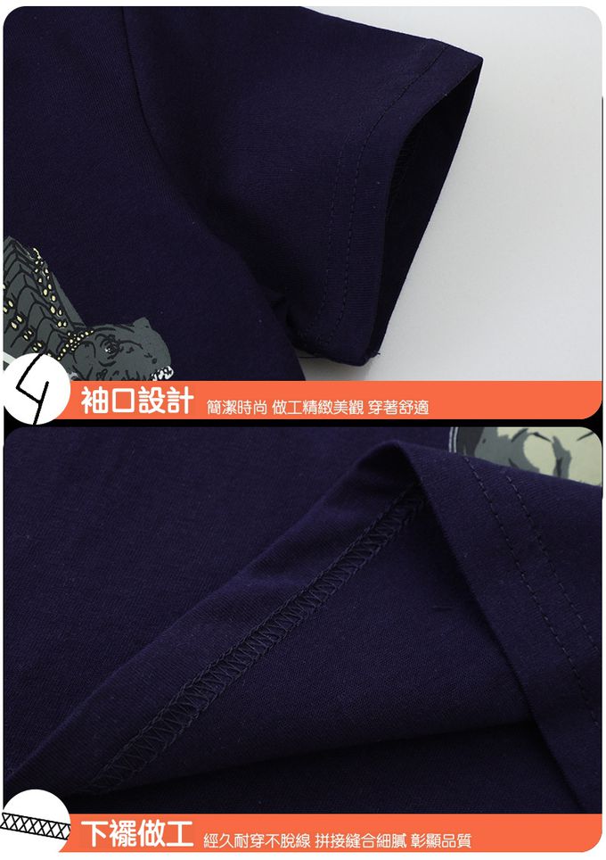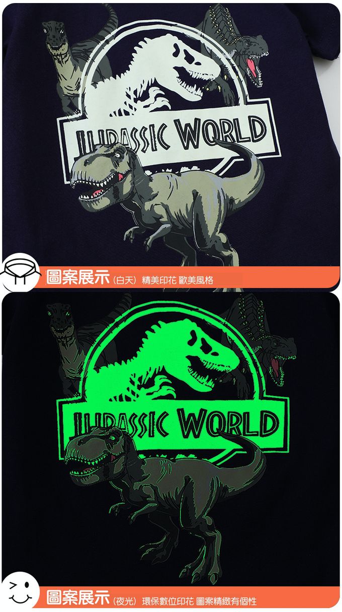 夜光圓領短袖上衣-恐龍世界-藏青