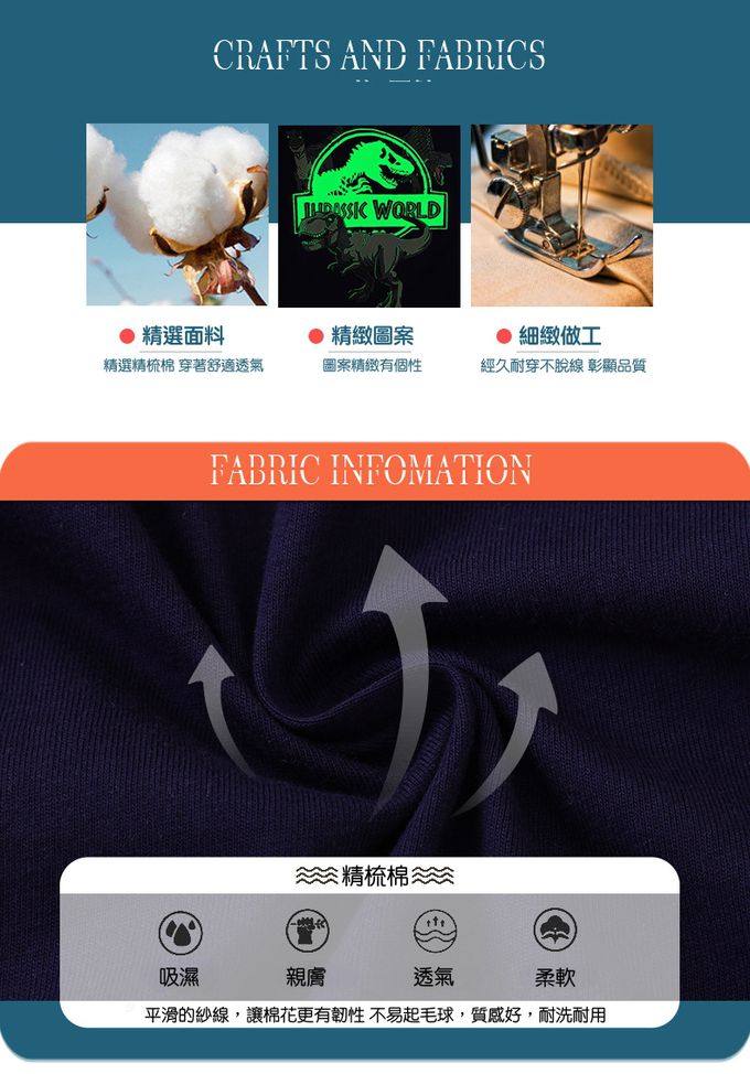 注意事項:1.此夜光圖案採用環保夜光粉印刷而成,洗滌多次後夜光效果減弱屬正常現象。 2.清洗夜光系列衣服時,請用40度以下的水溫清洗,不可用內含漂白劑的洗滌劑清洗,避免用手搓圖案的表面,請將衣物翻面放入洗衣袋清洗,晾曬時請將衣物翻面,不可讓夜光圖正面曝曬在陽光下。 3.若要熨燙衣物,晾乾後將衣物反面使用中溫熨燙,不可直接於夜光圖正面熨燙。