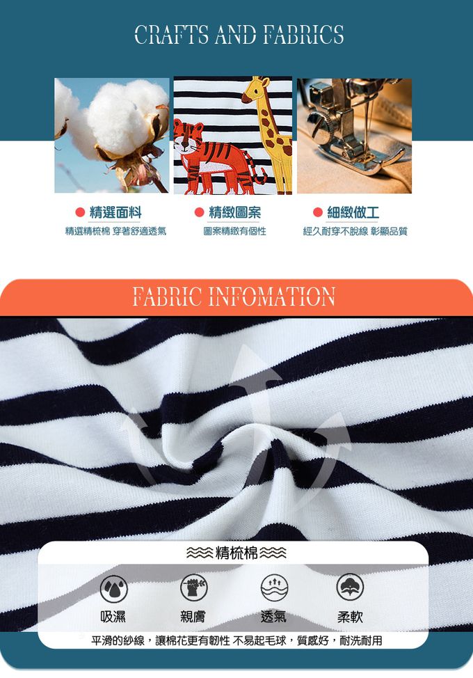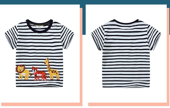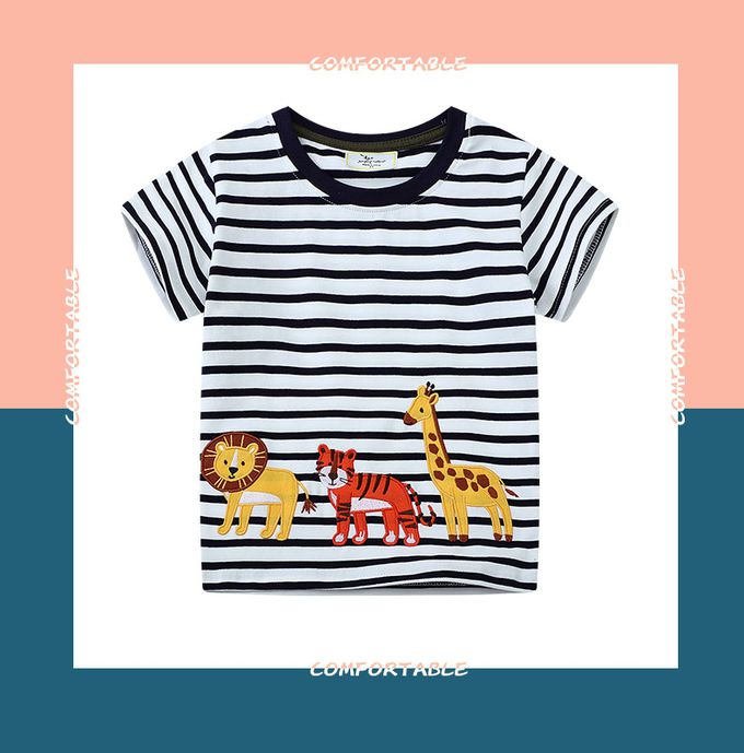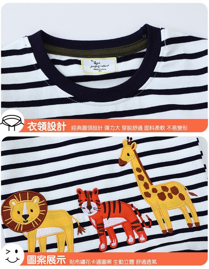 棉質圓領短袖上衣-獅子老虎長頸鹿-條紋