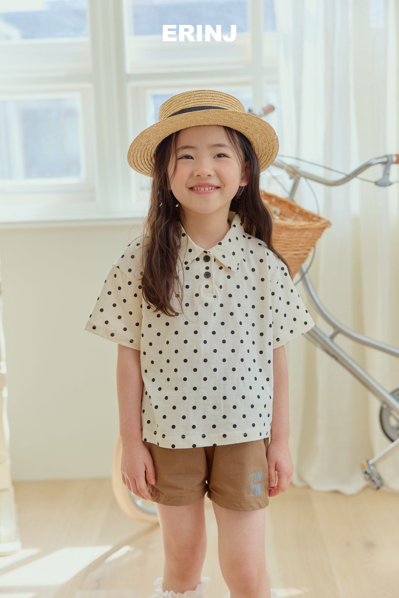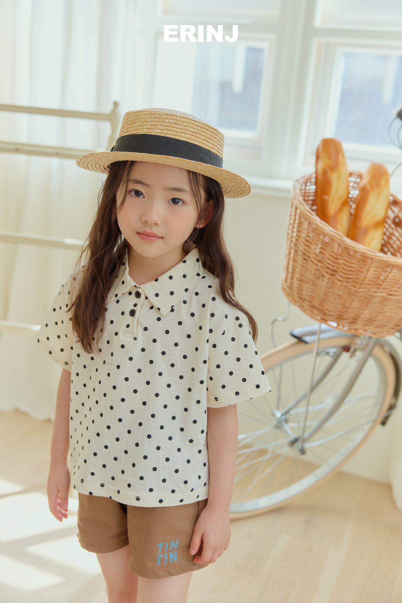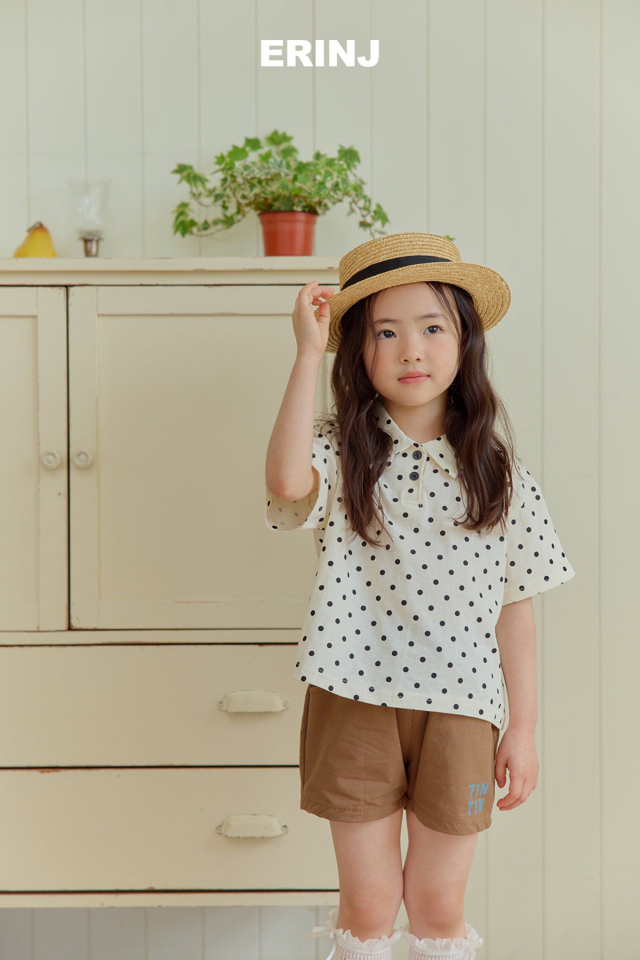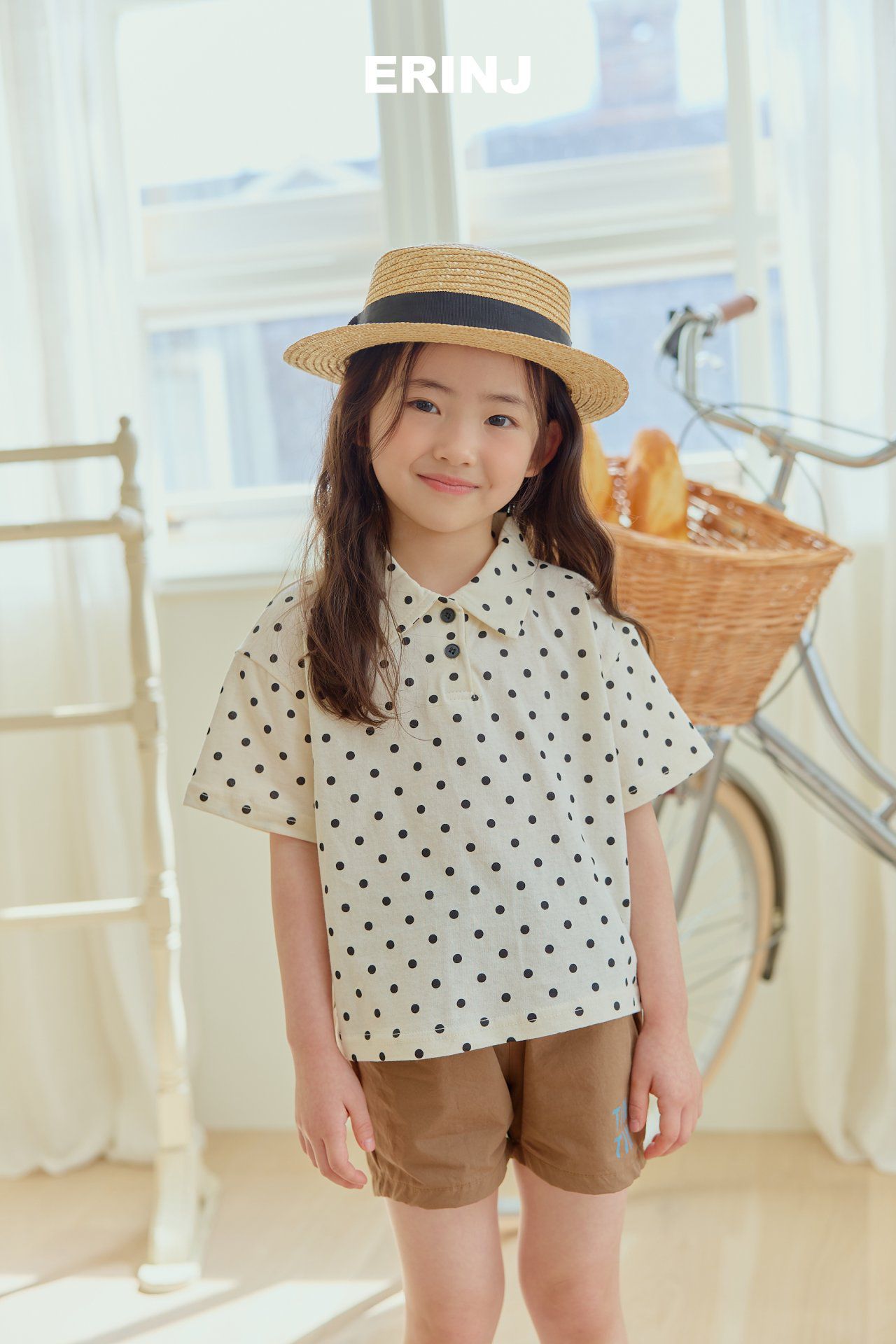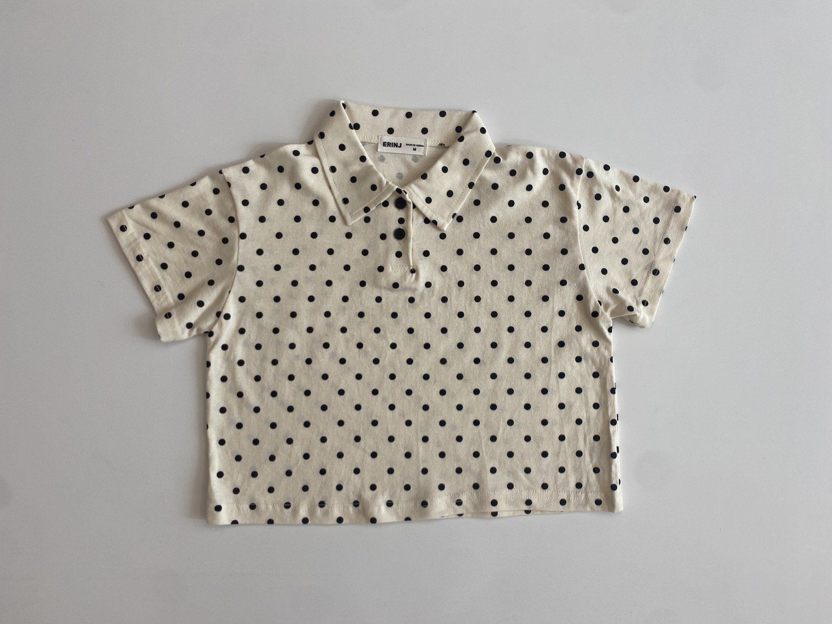 韓國 ERINJ - 小圓點翻領短袖上衣-象牙白