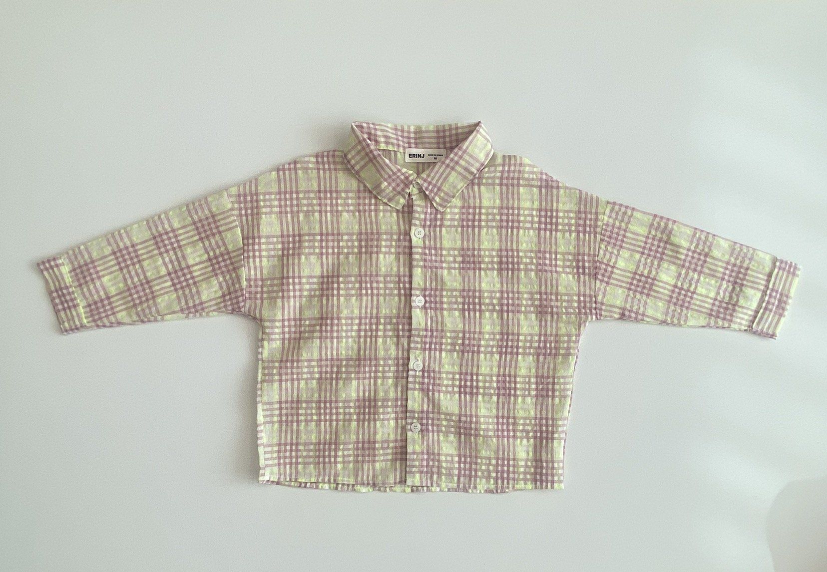 韓國 ERINJ - 清新雙色格紋翻領襯衫/外套-粉