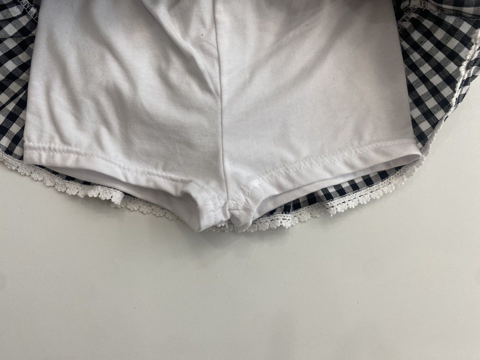 • 品名:鬆緊腰蕾絲鑲邊格紋蛋糕裙