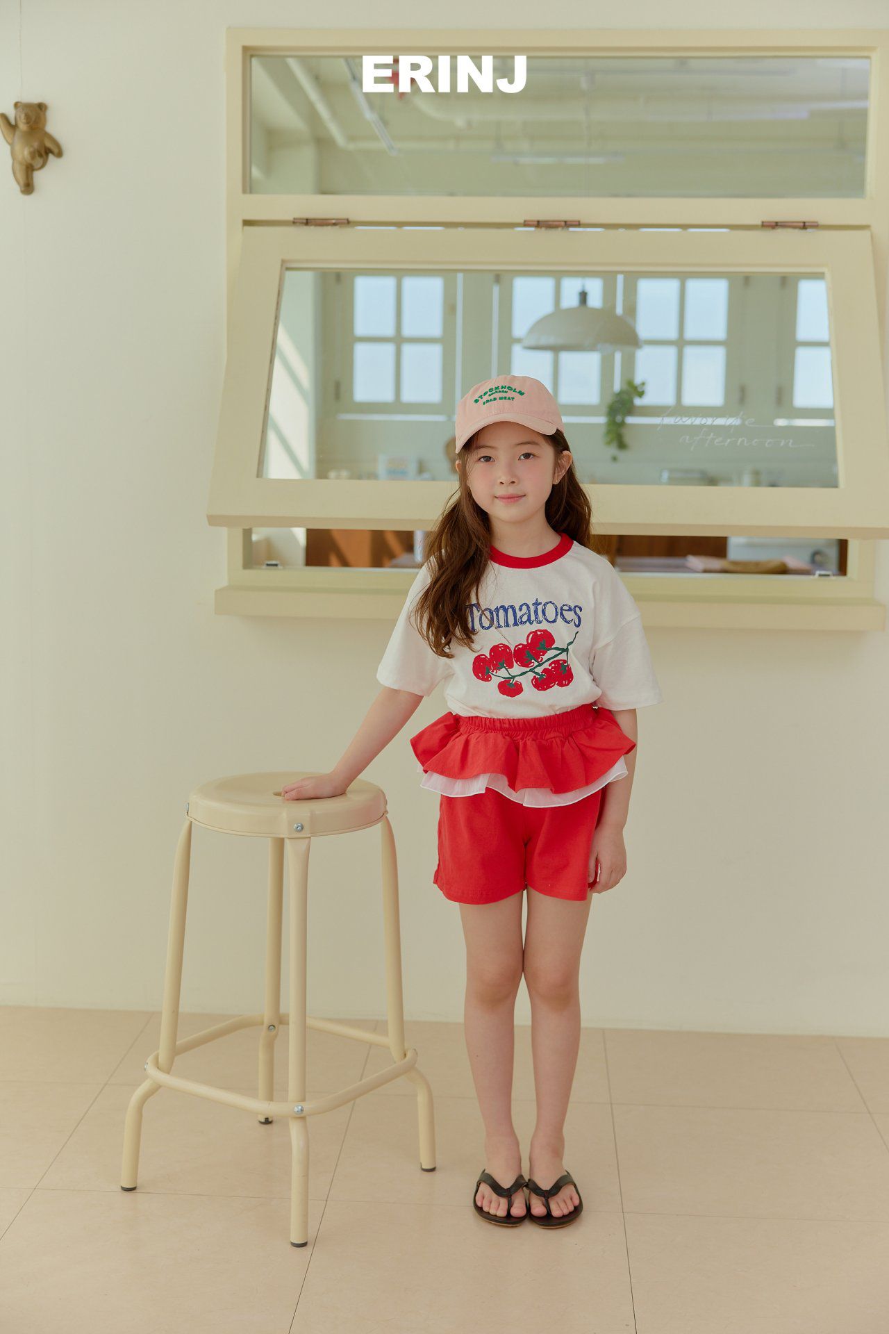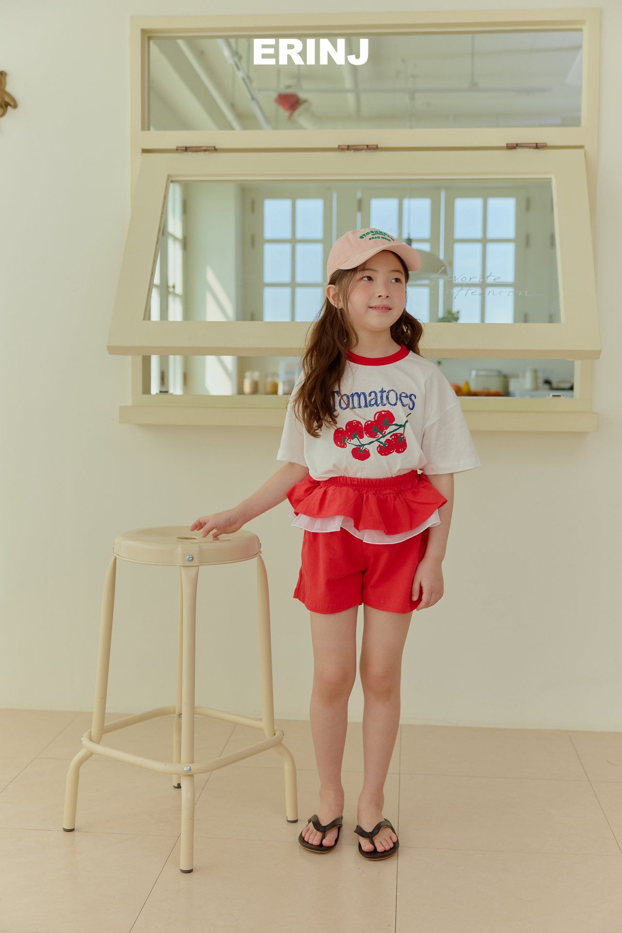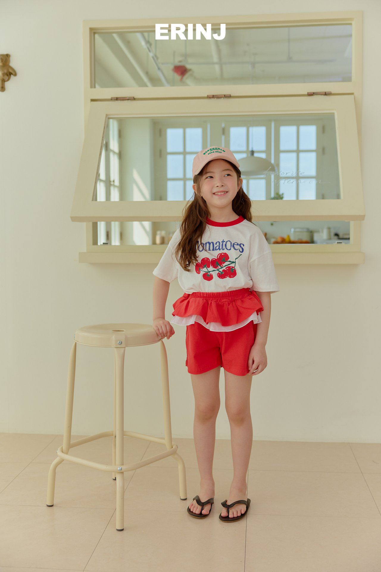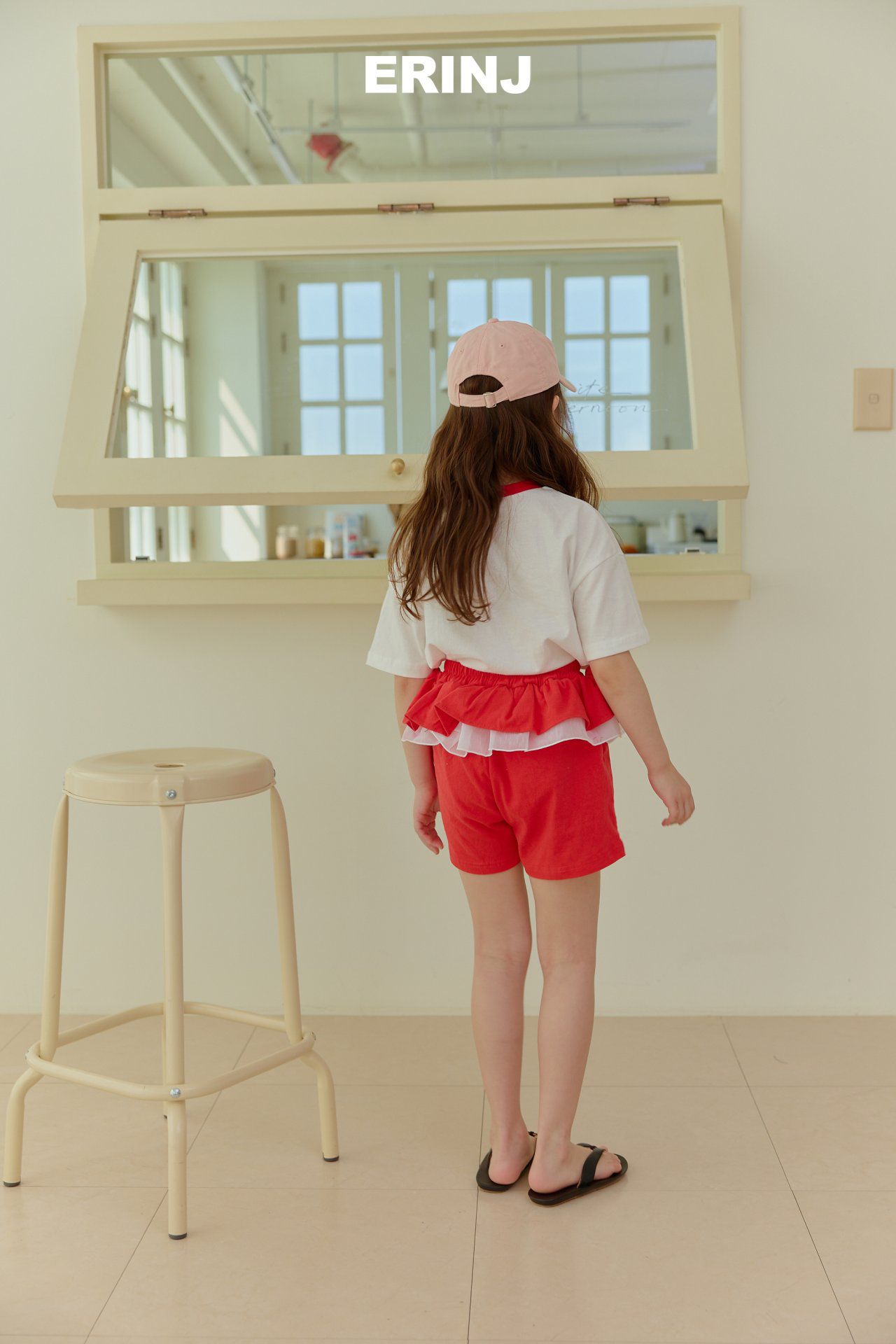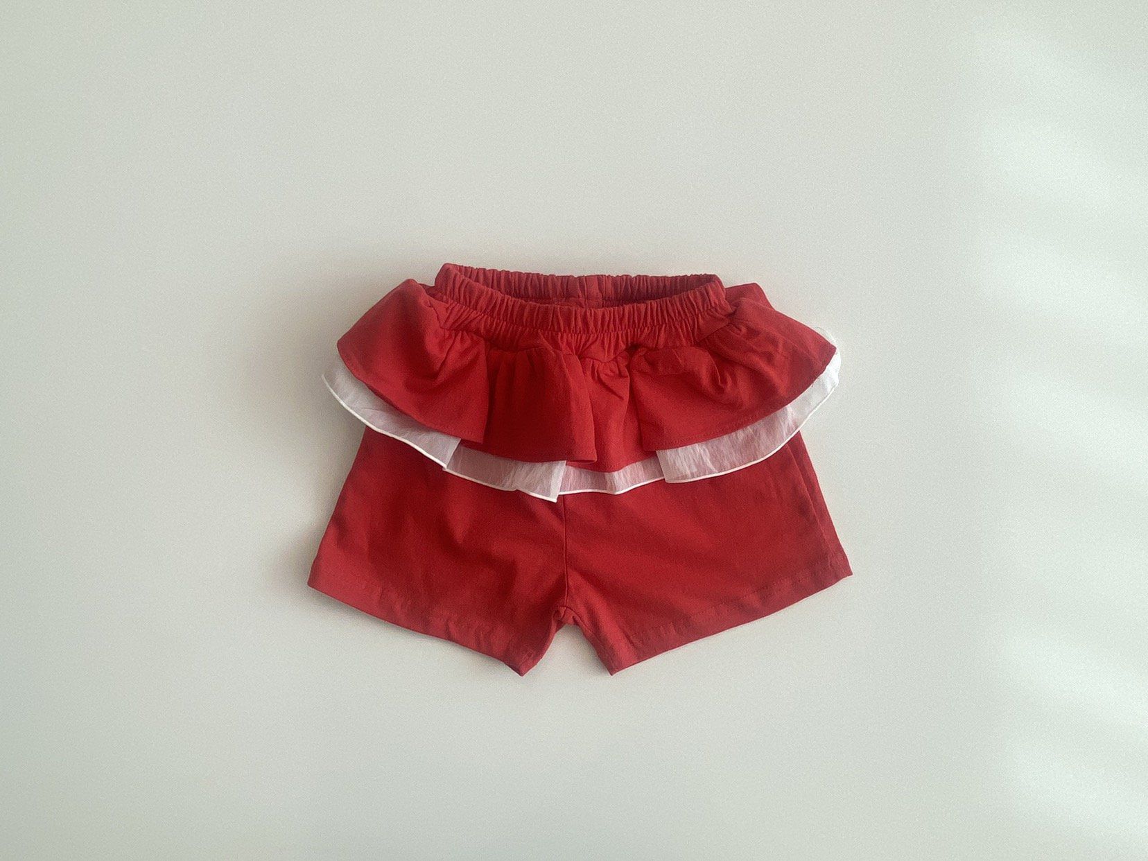 韓國 ERINJ - 鬆緊腰荷葉層次點綴短褲-紅