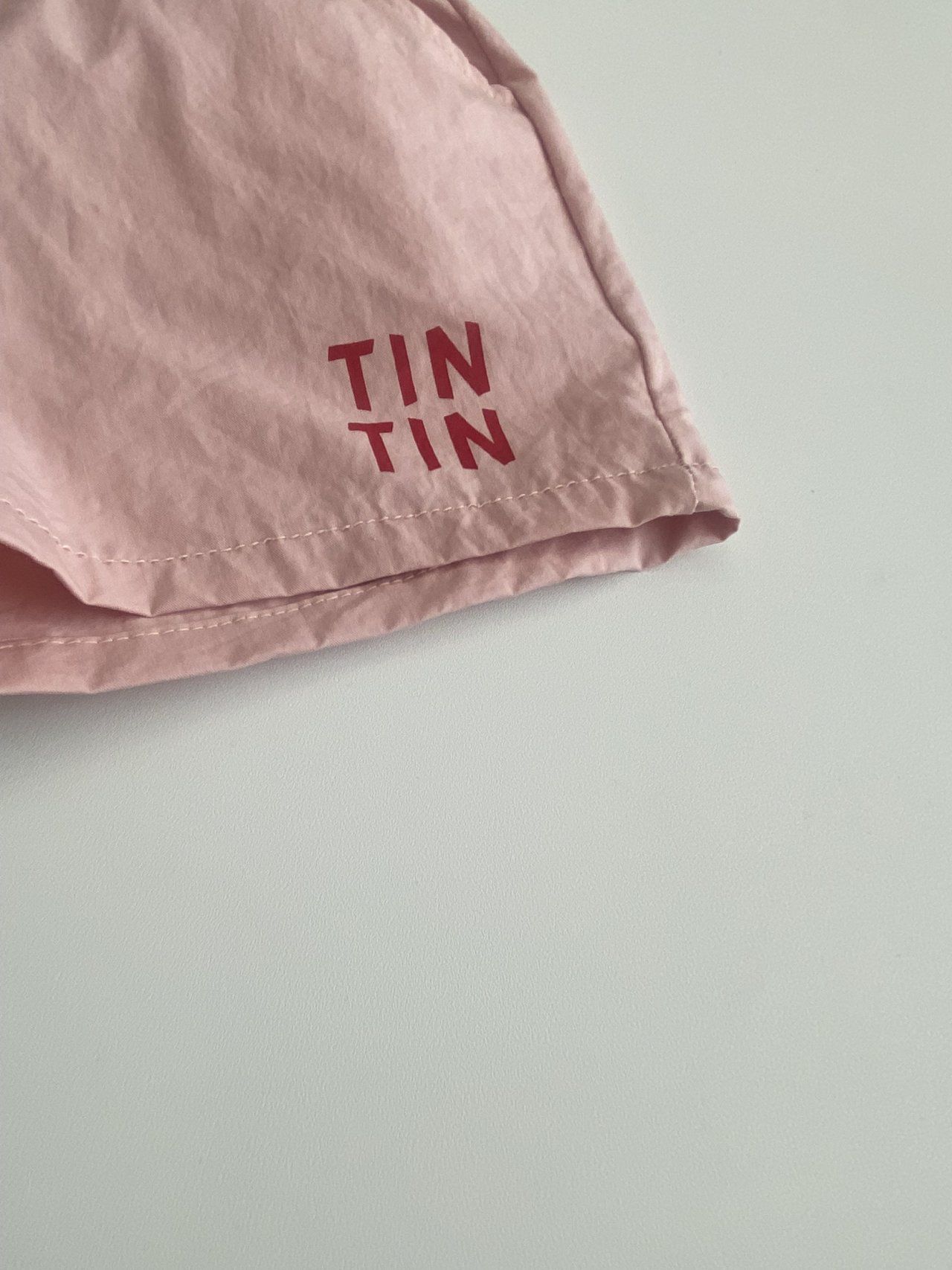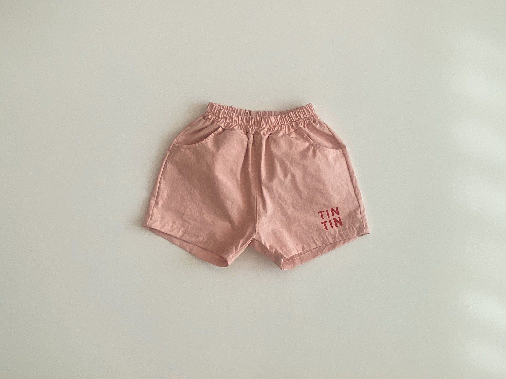 韓國 ERINJ - 鬆緊腰文字印短褲-TIN TIN-粉