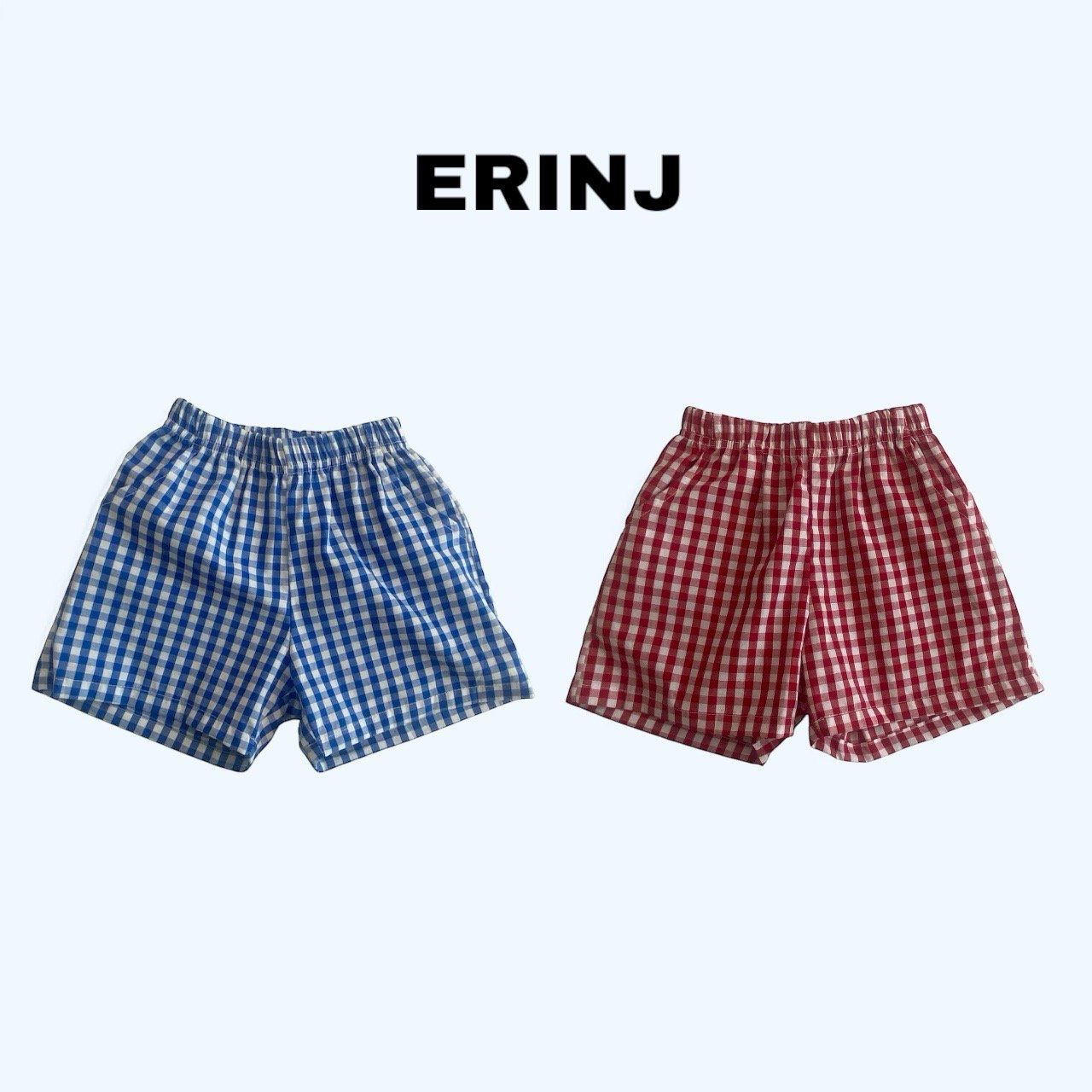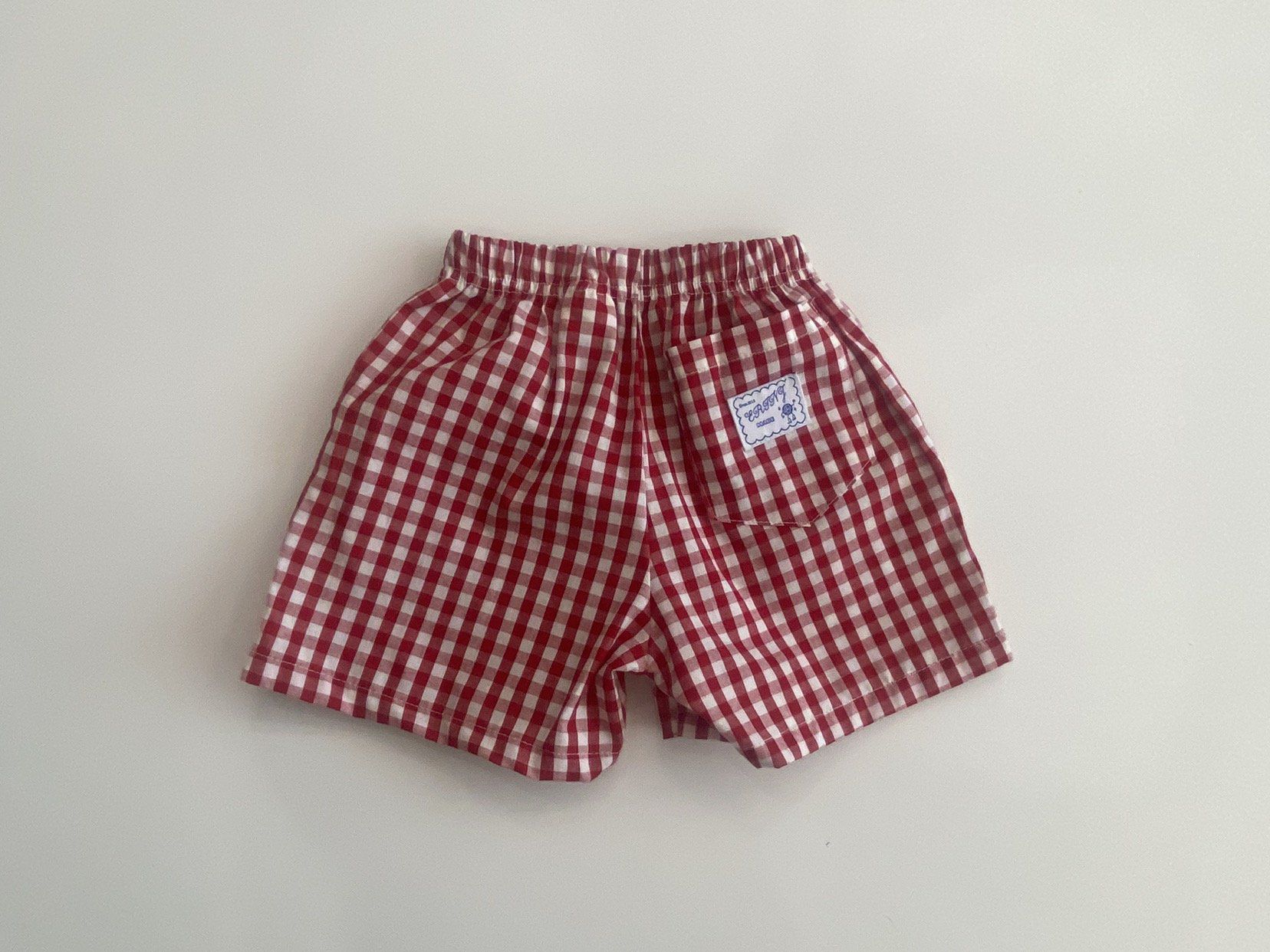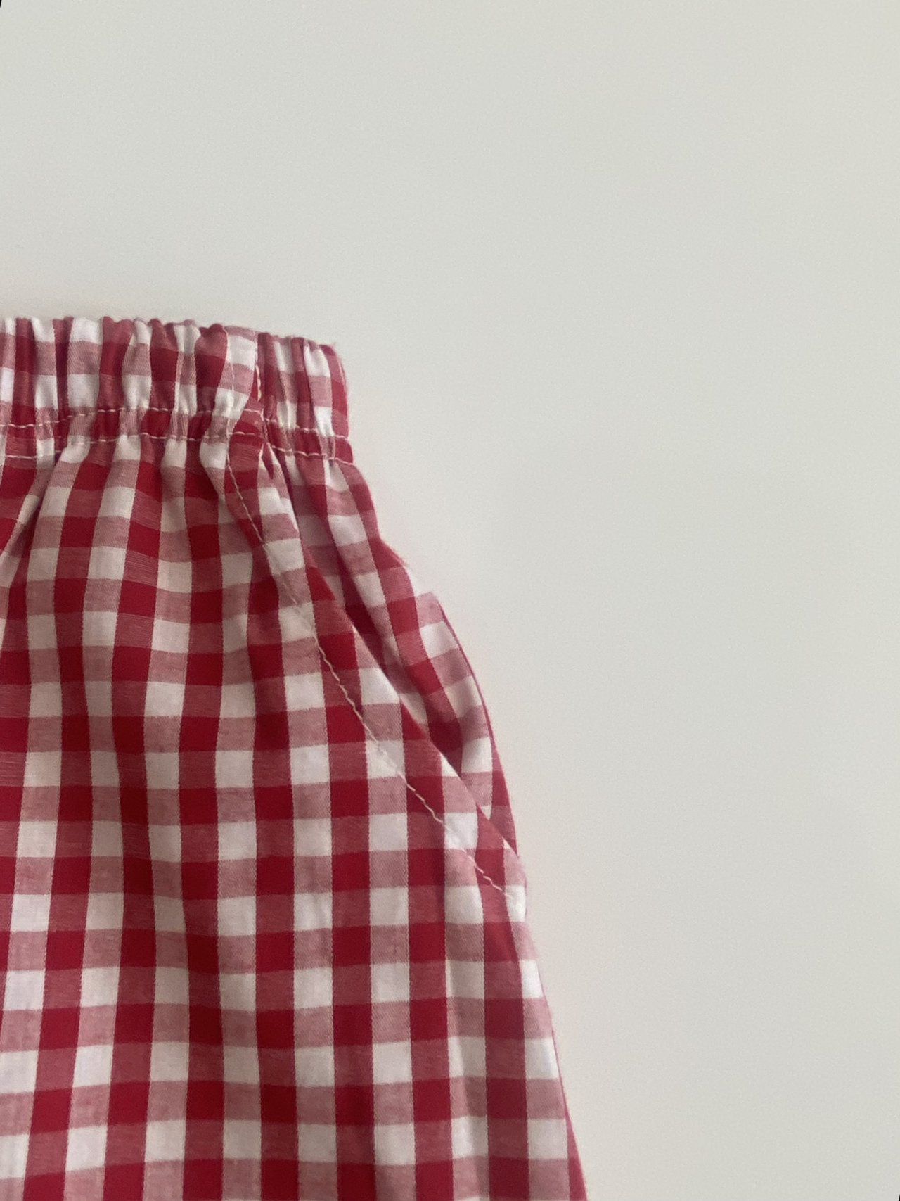 韓國 ERINJ - 鬆緊腰極簡格紋短褲-紅