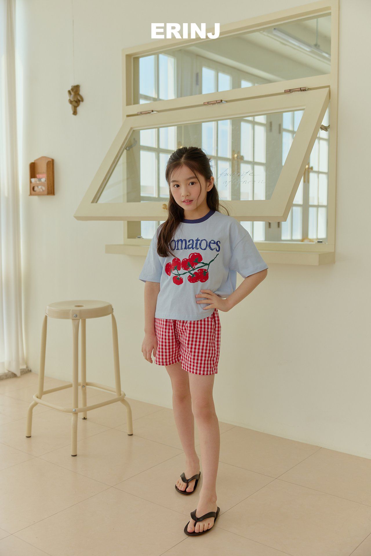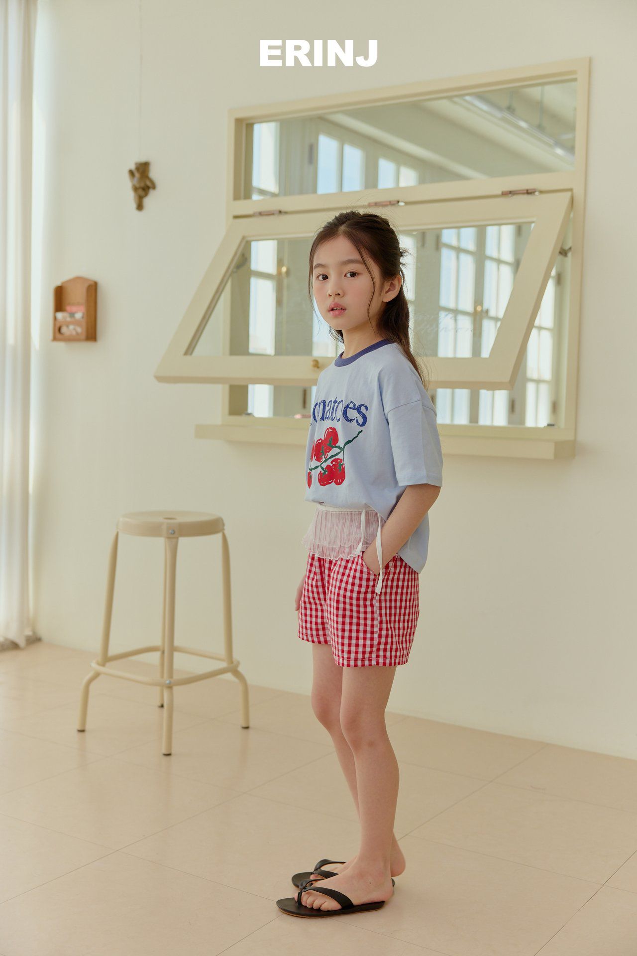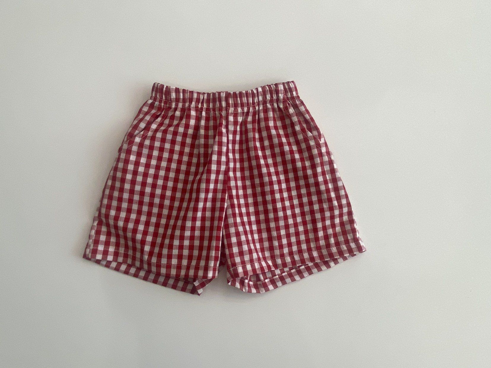 韓國 ERINJ - 鬆緊腰極簡格紋短褲-紅