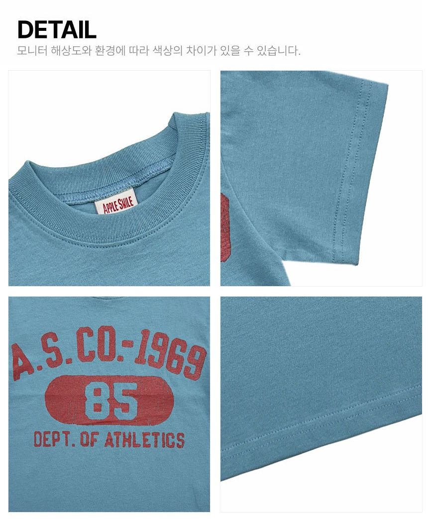 韓國 APPLE SMILE - 斑駁感美式標語短袖上衣-薄荷藍