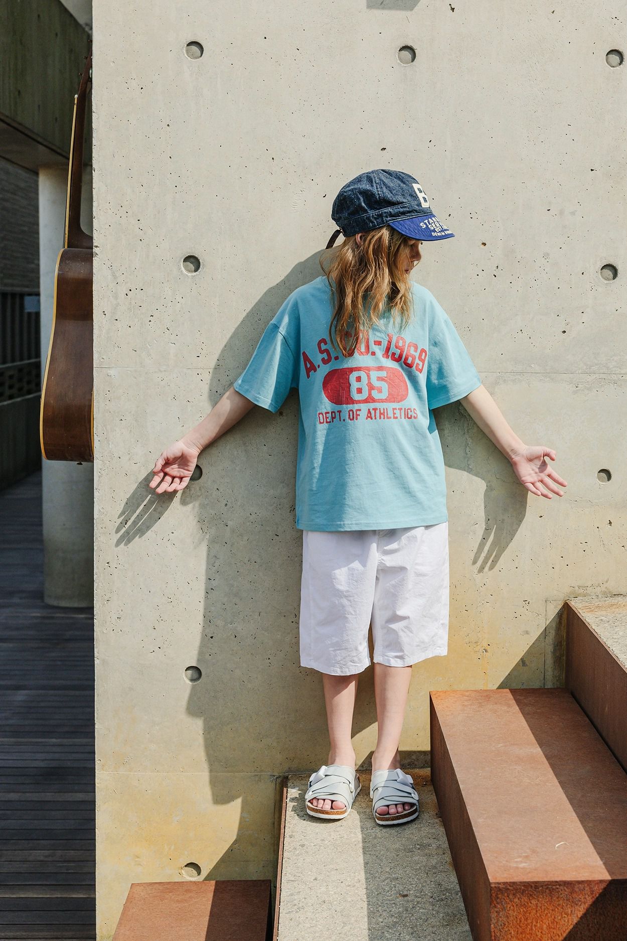 • 品名:斑駁感美式標語短袖上衣