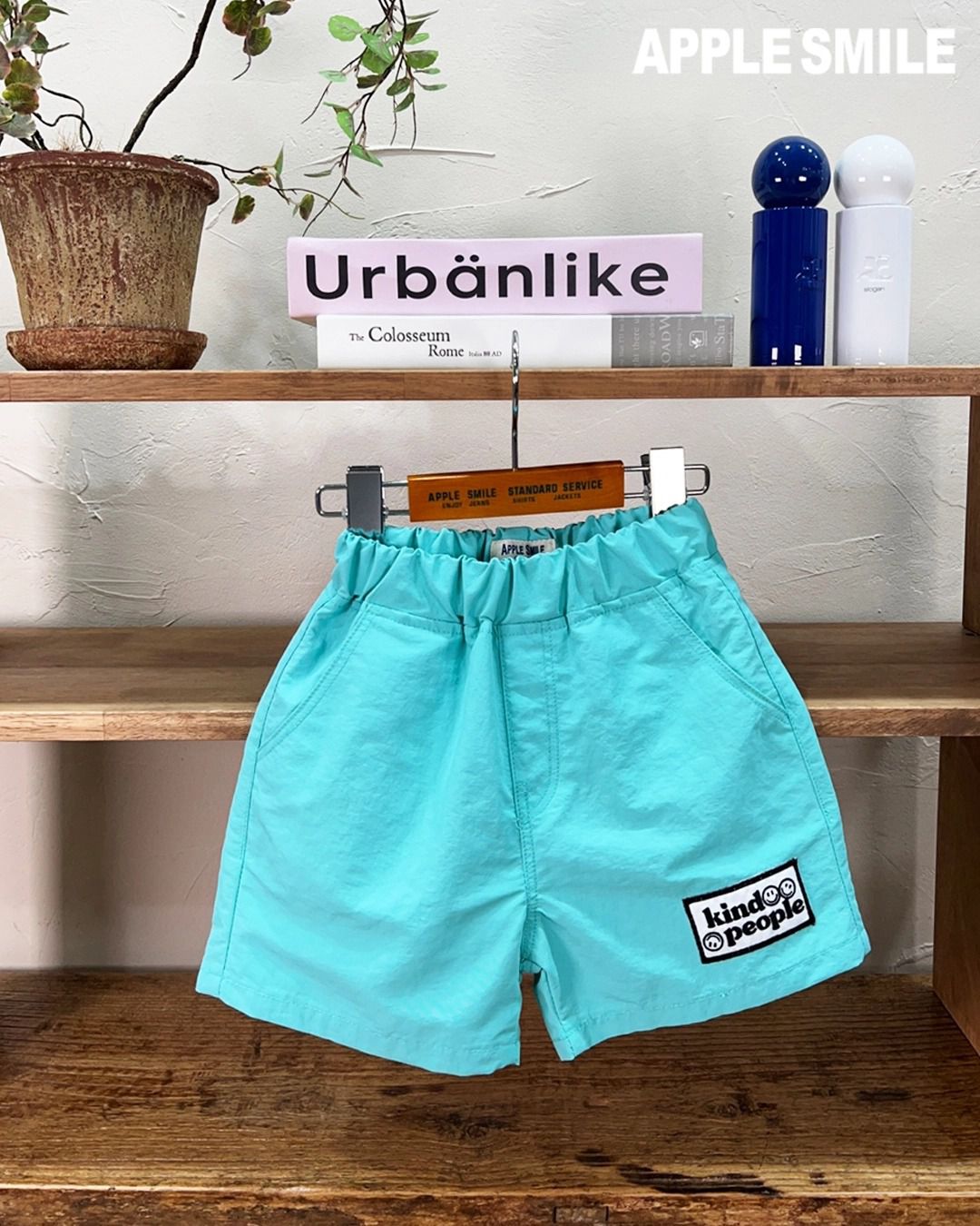 韓國 APPLE SMILE - 鬆緊腰潮流小標百搭短褲-薄荷藍