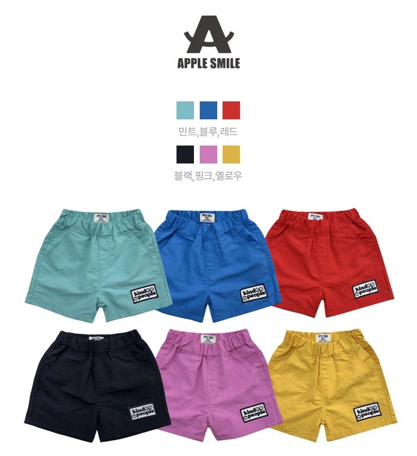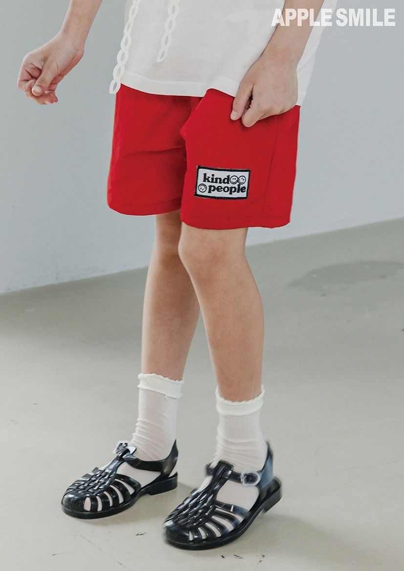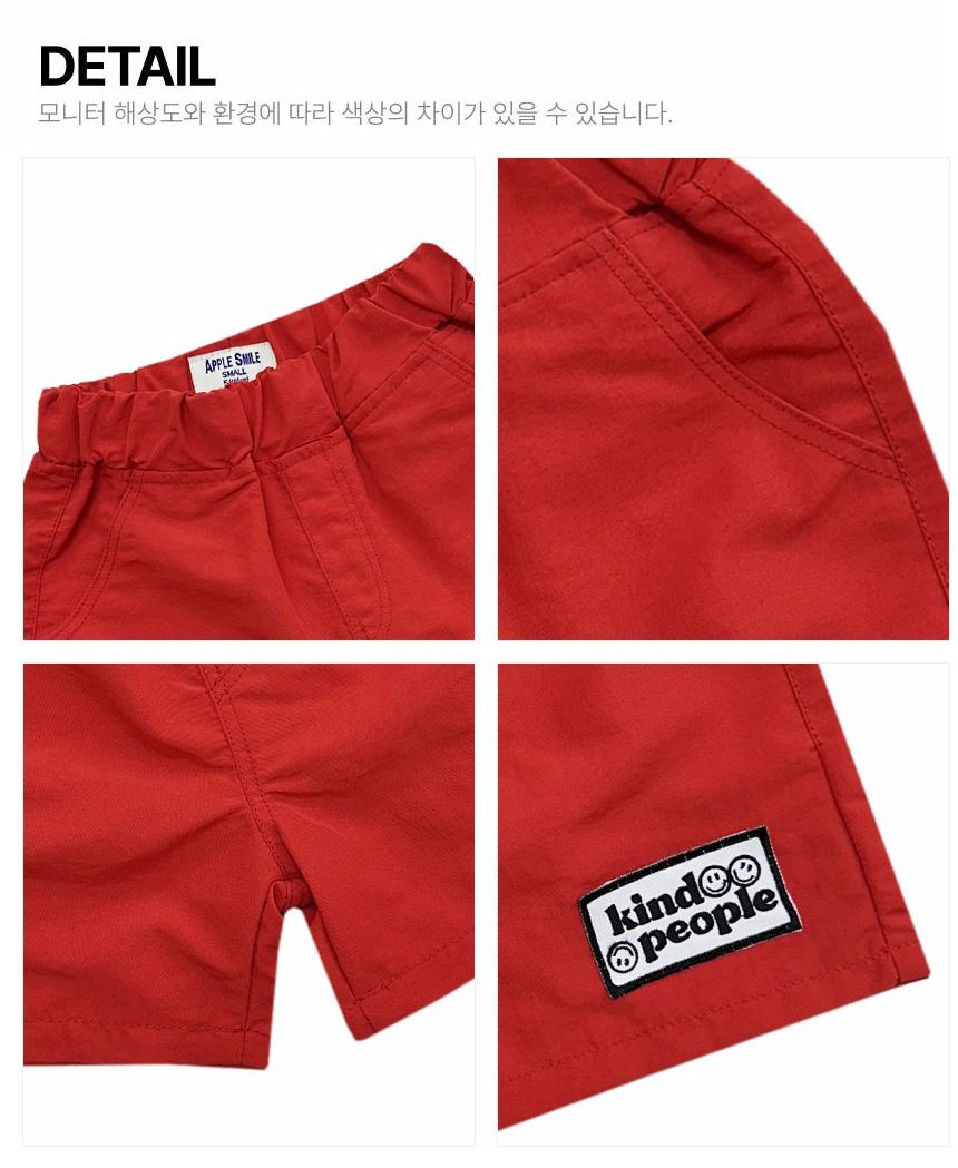 韓國 APPLE SMILE - 鬆緊腰潮流小標百搭短褲-紅