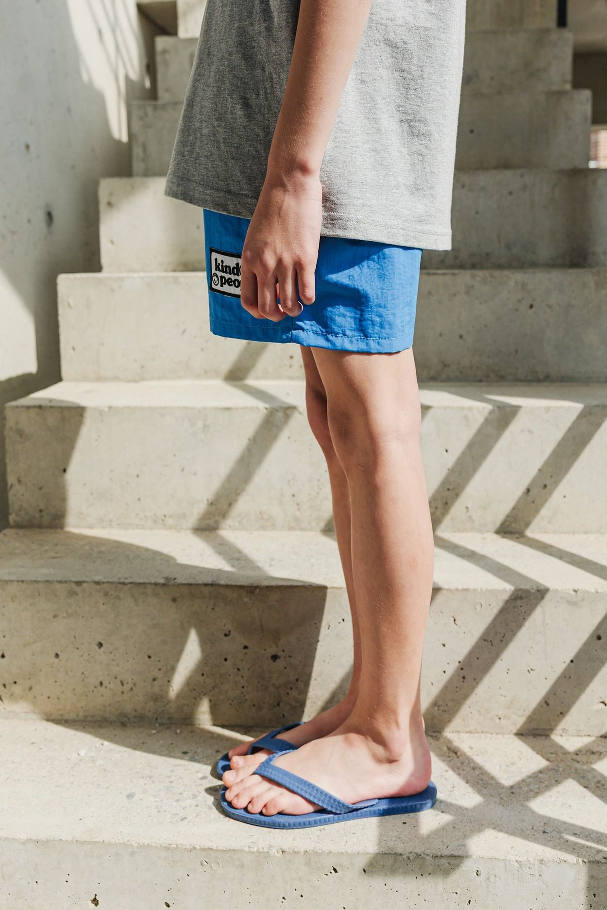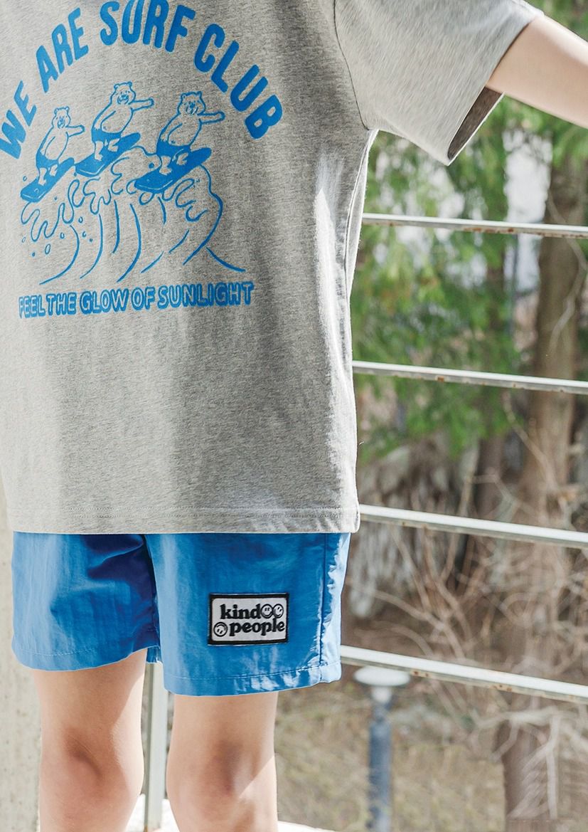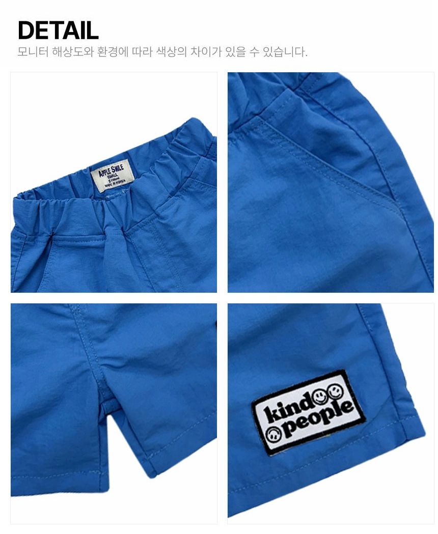 韓國 APPLE SMILE - 鬆緊腰潮流小標百搭短褲-藍