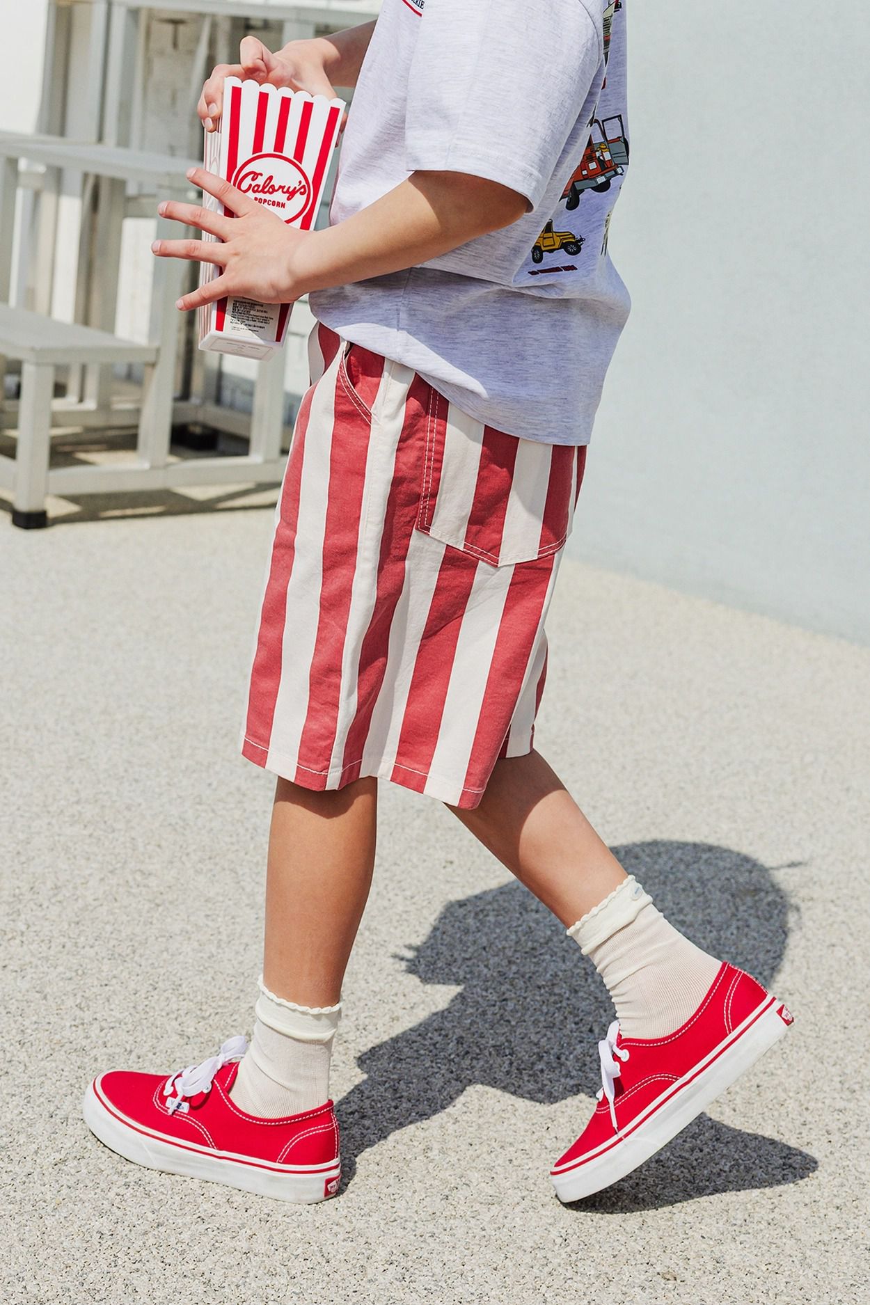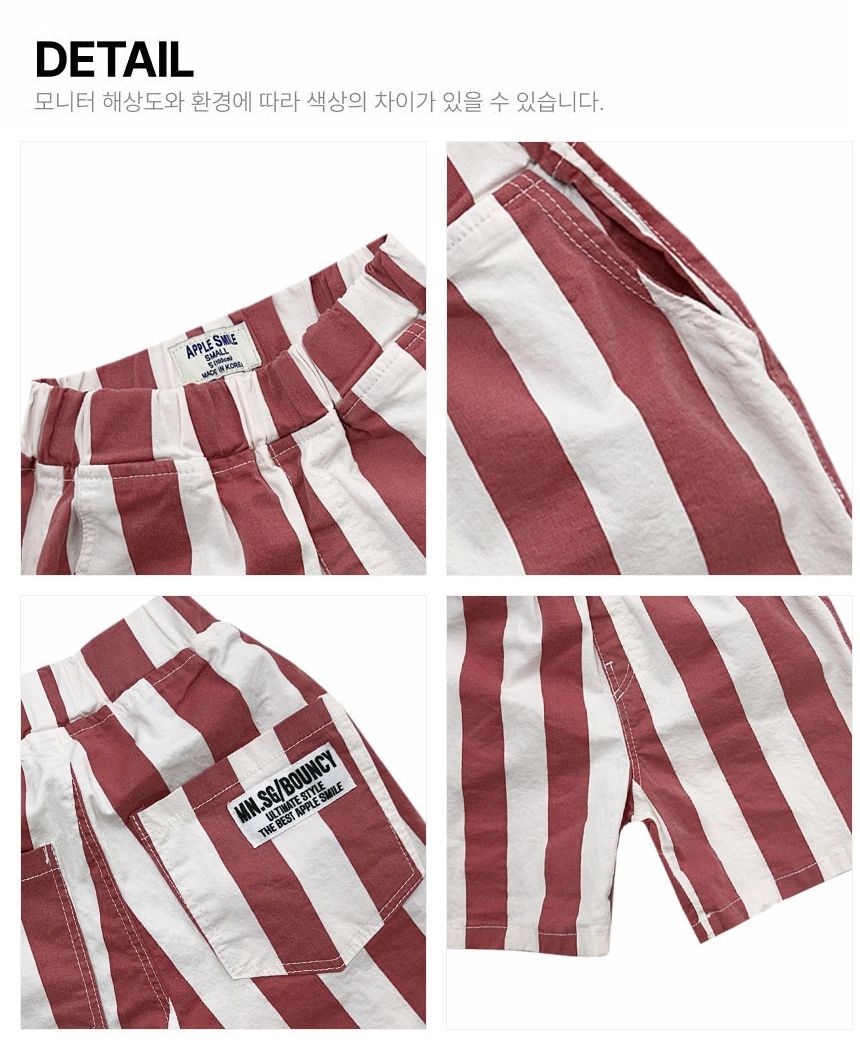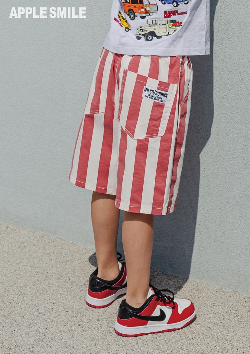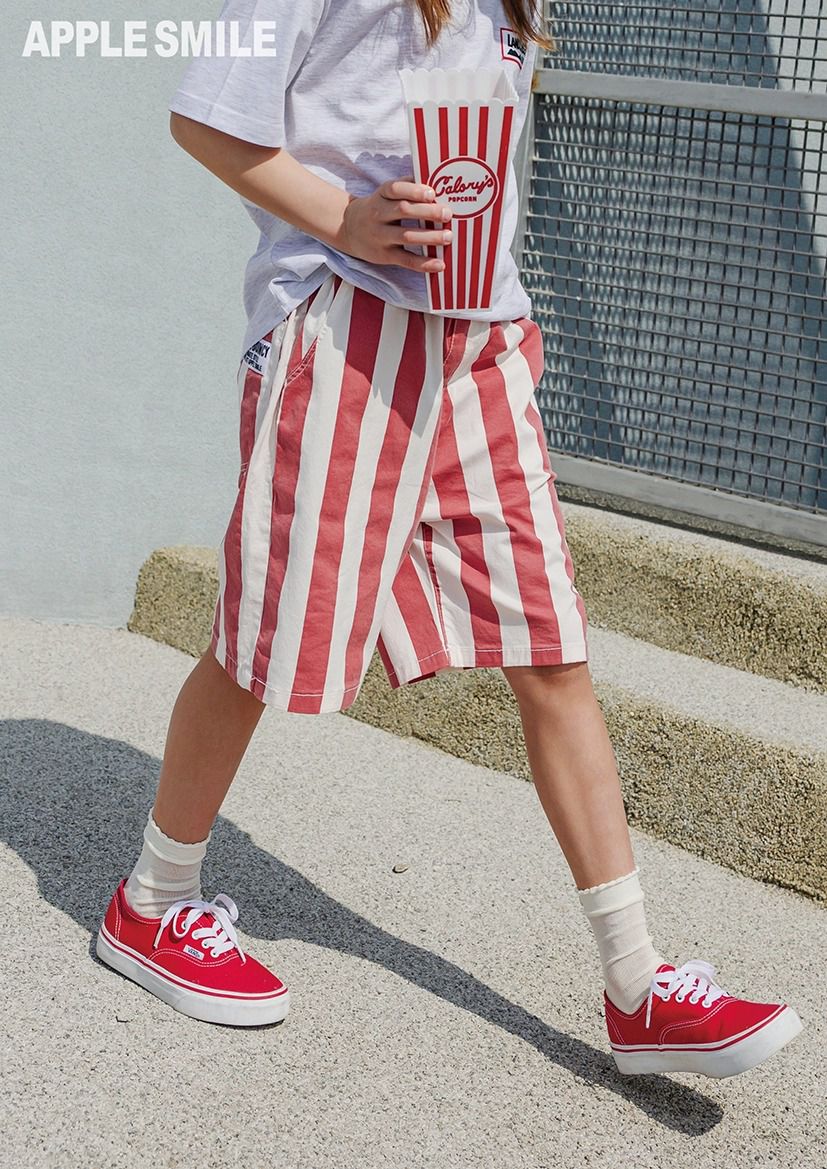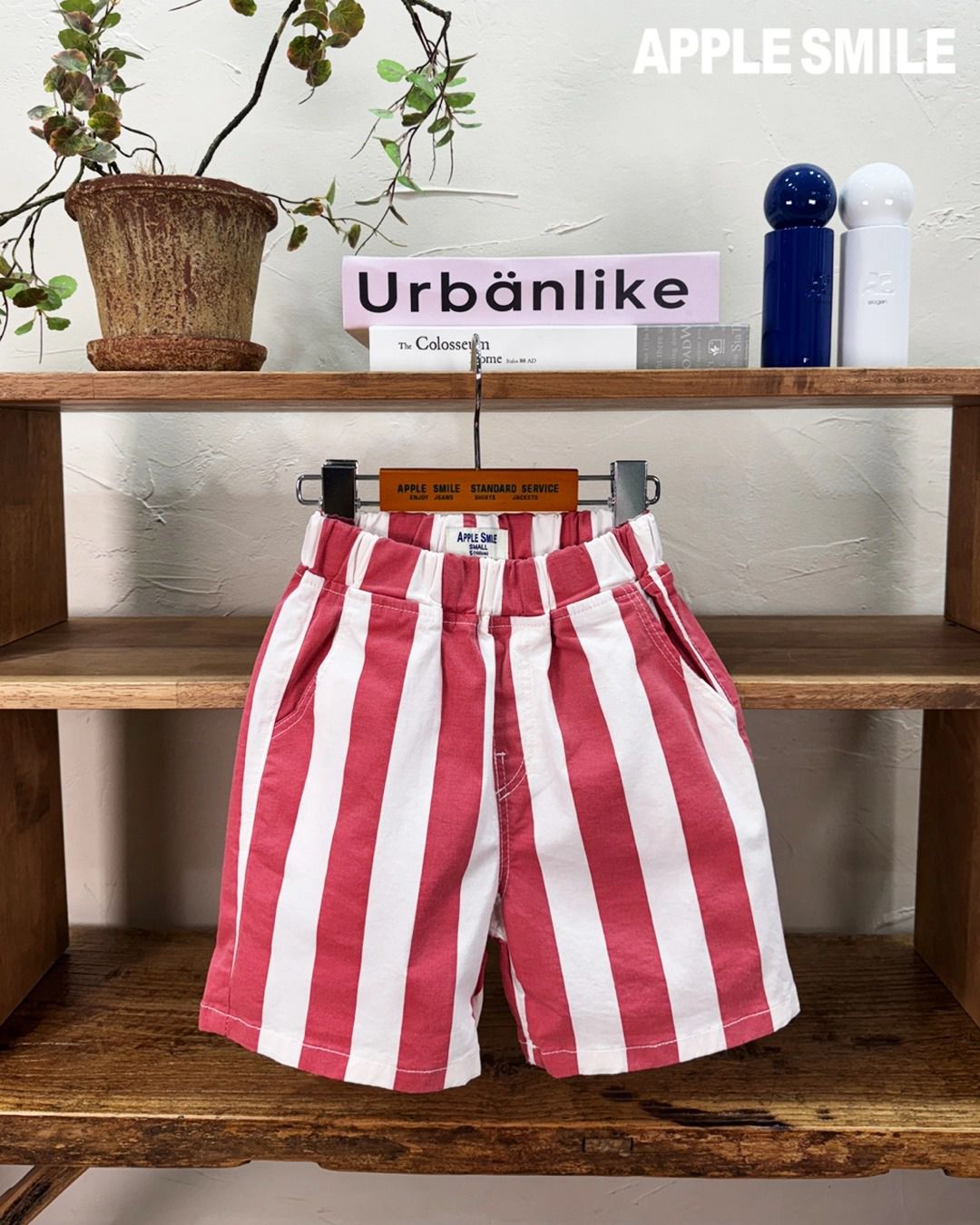 韓國 APPLE SMILE - 鬆緊腰大口袋寬直紋過膝褲-紅