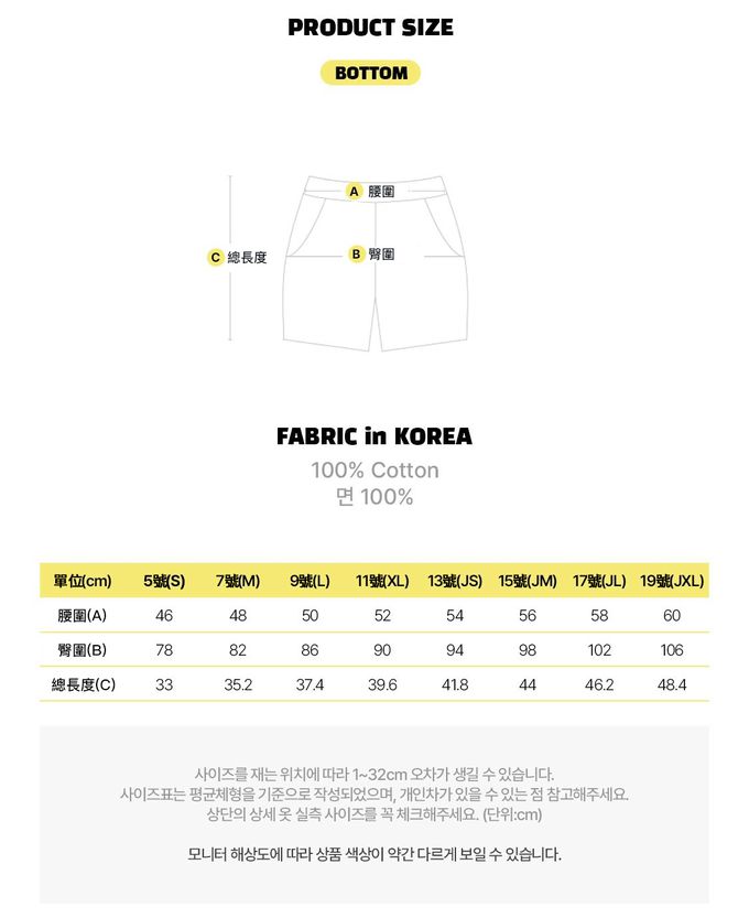 1. 尺寸表單位皆為公分(cm),實際尺寸會因布料彈性、水洗、測量起訖點等因素略有誤差。