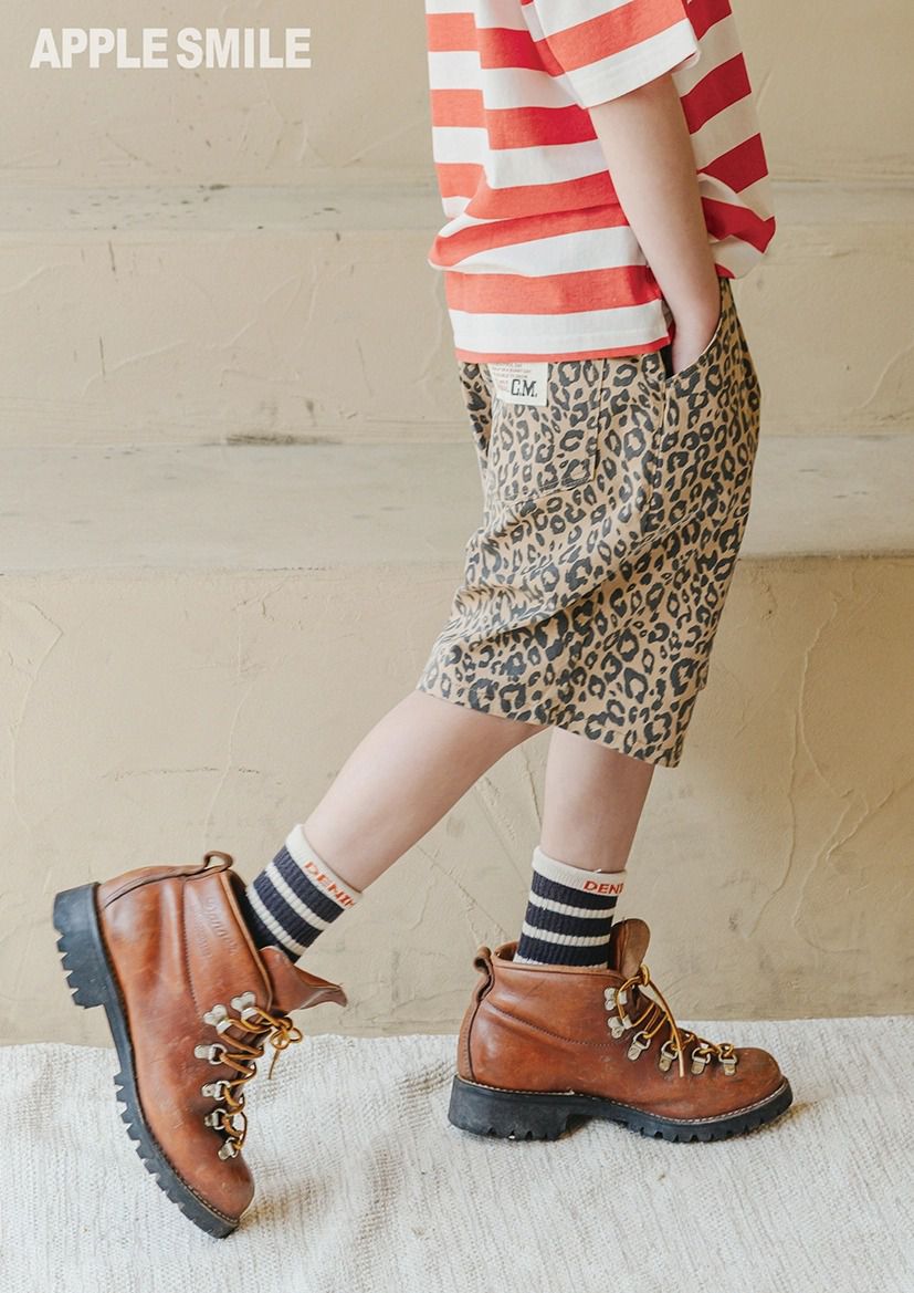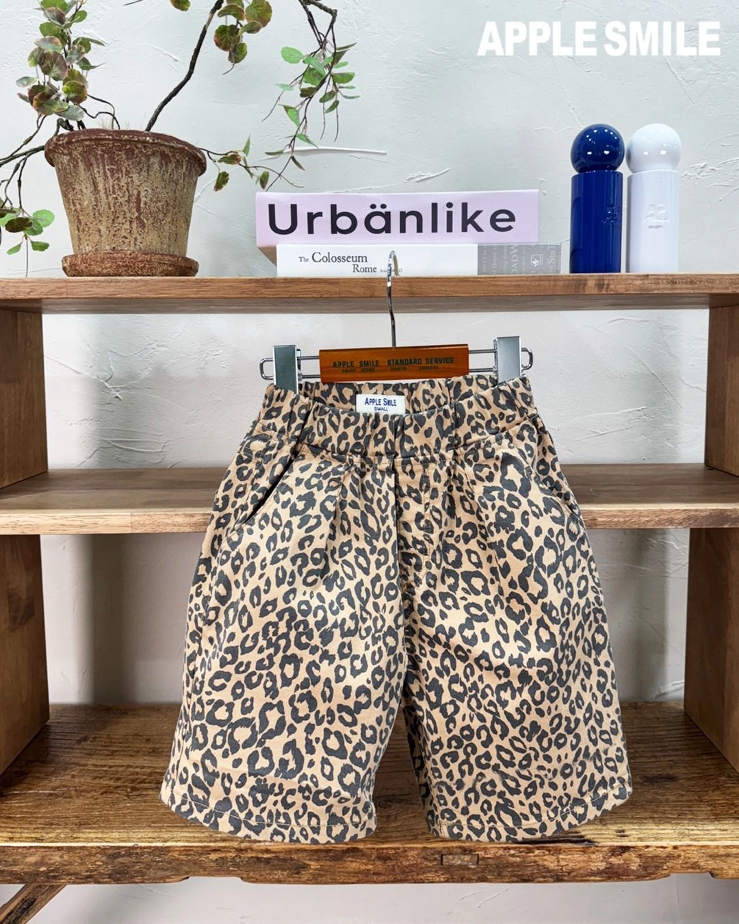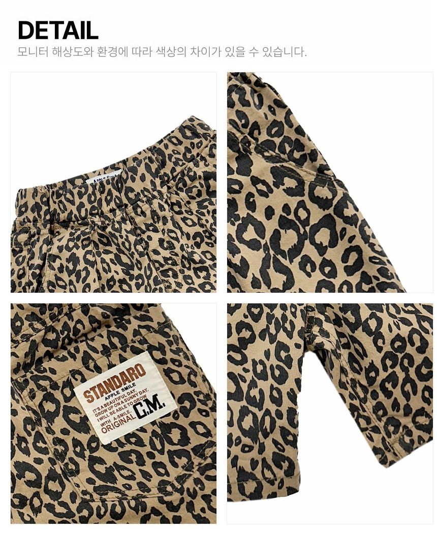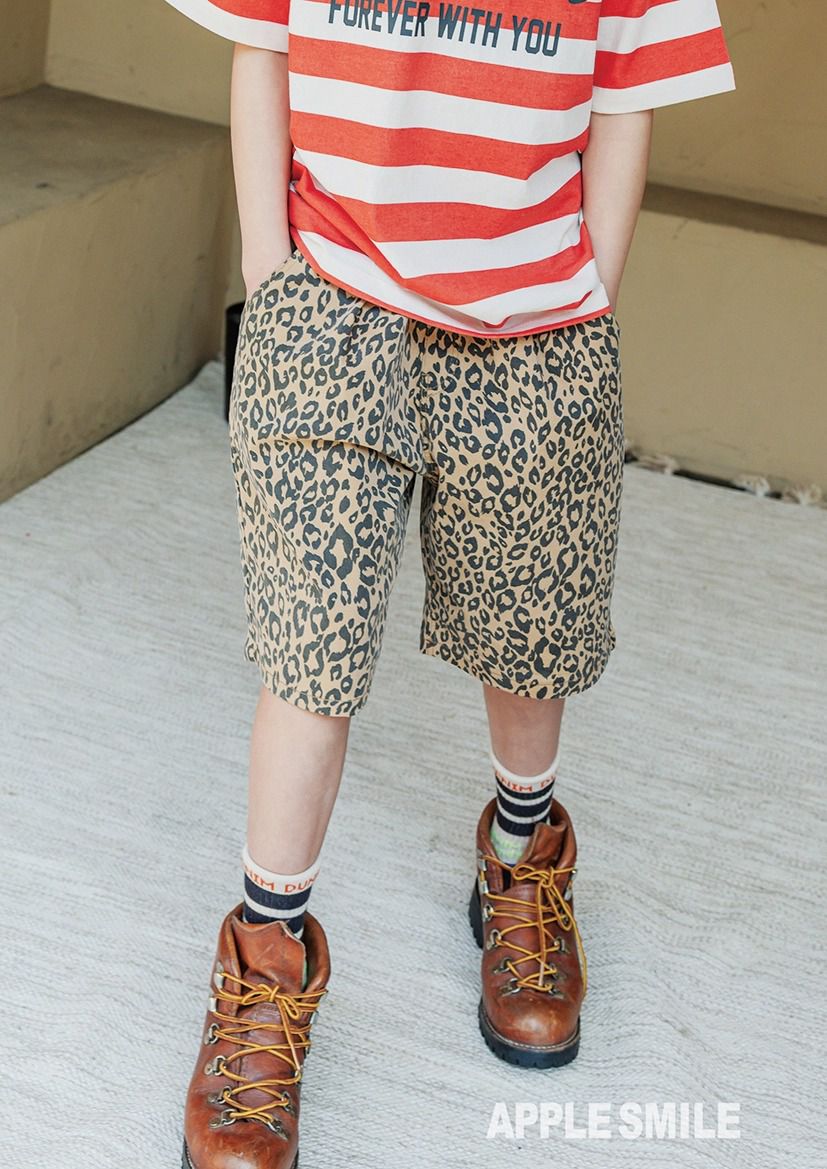 韓國 APPLE SMILE - 鬆緊腰潮流豹紋過膝褲-卡其