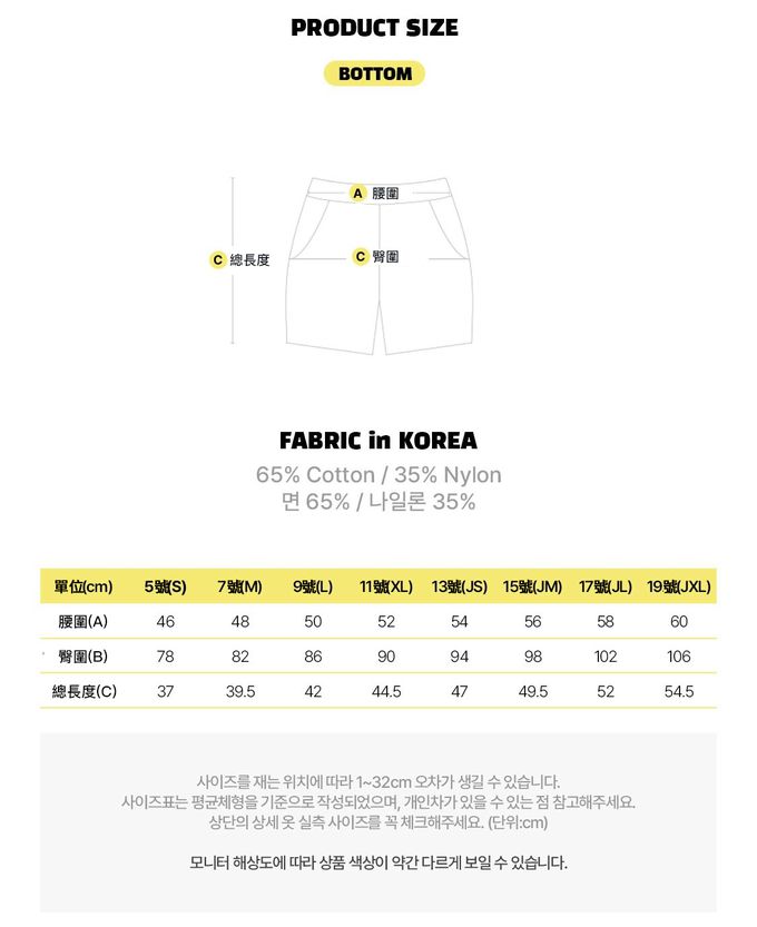 1. 尺寸表單位皆為公分(cm),實際尺寸會因布料彈性、水洗、測量起訖點等因素略有誤差。