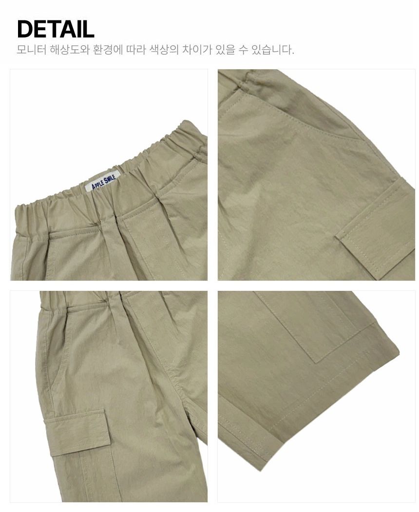 韓國 APPLE SMILE - 鬆緊腰側口袋工裝過膝褲-卡其