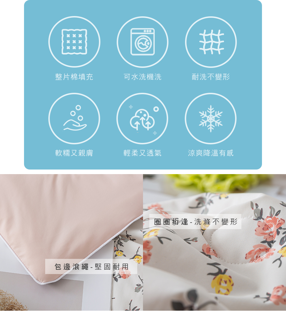 • 材質:表布-涼感紗(87%尼龍+13%彈性纖維)/填充物-30%萊賽爾+70%聚酯纖維