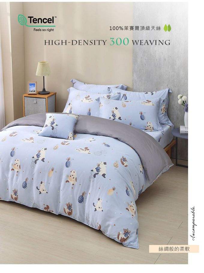 雙人薄被套 300織100%天絲 萊賽爾-喵喵里歐