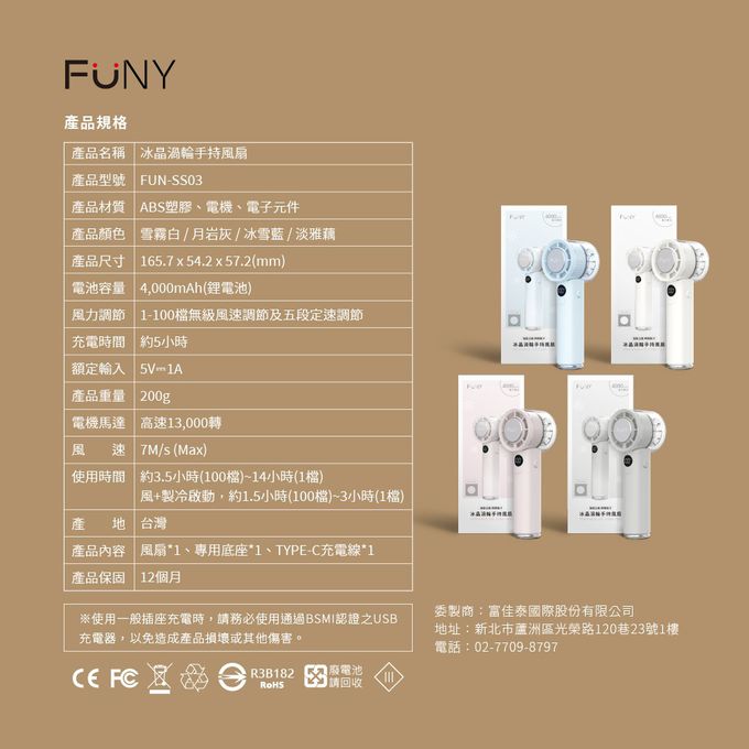 FUNY - 台灣製冰晶渦輪手持風扇-雪霧白-200g