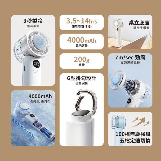 台灣製冰晶渦輪手持風扇-雪霧白-200g