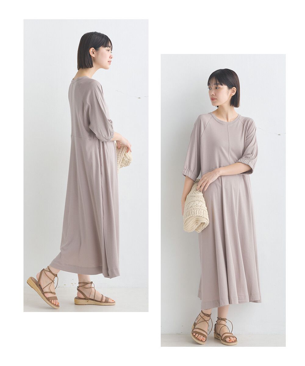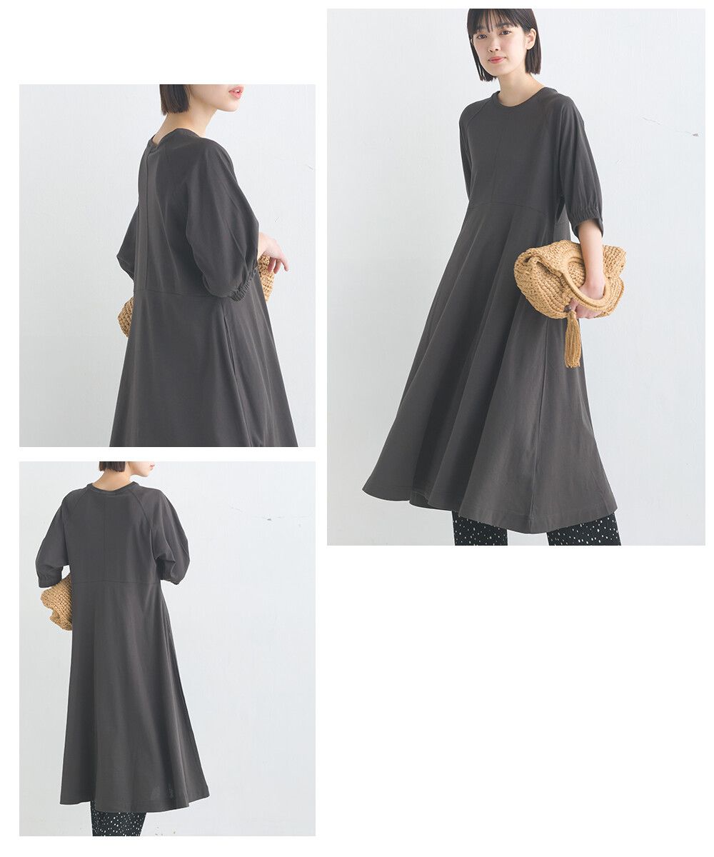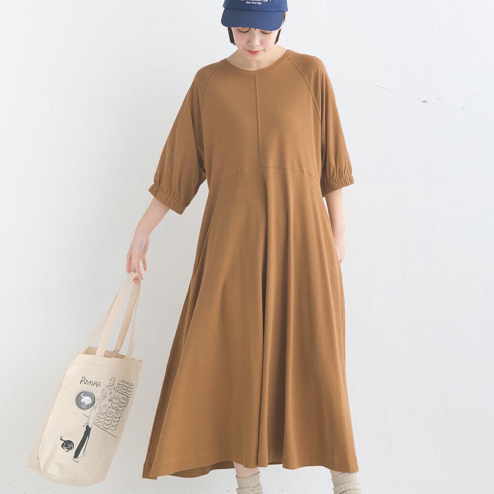 日本 OMNES - 抗透汗 皺褶氣球短袖洋裝-咖啡