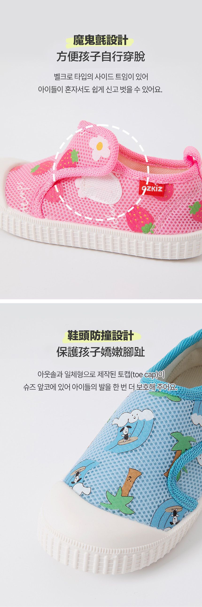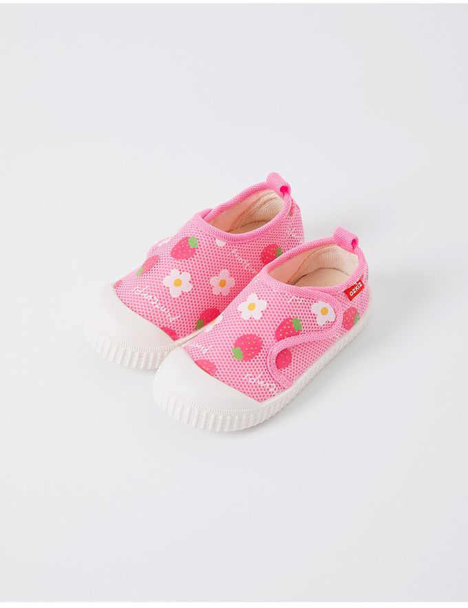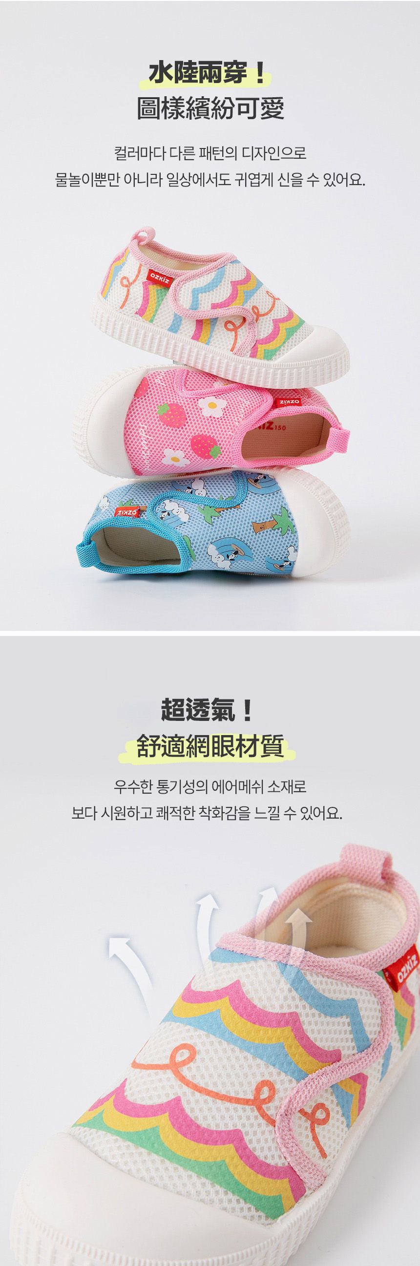 韓國 OZKIZ - 水陸兩穿!網眼透氣玩水沙灘鞋/休閒鞋-草莓花朵-粉
