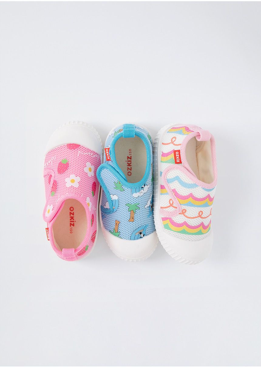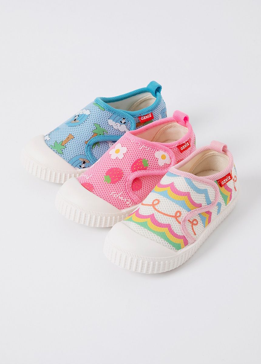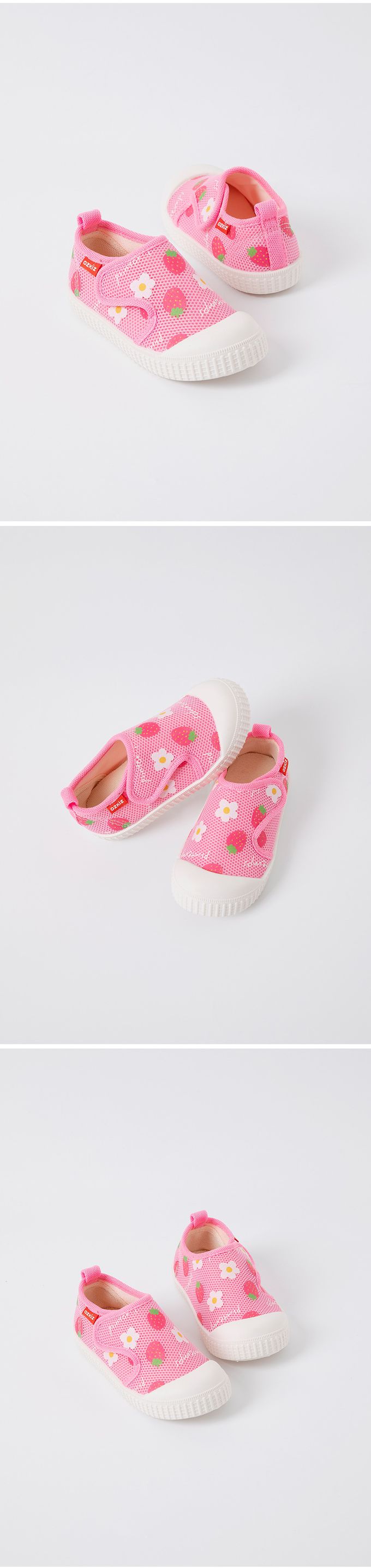 韓國 OZKIZ - 水陸兩穿!網眼透氣玩水沙灘鞋/休閒鞋-草莓花朵-粉