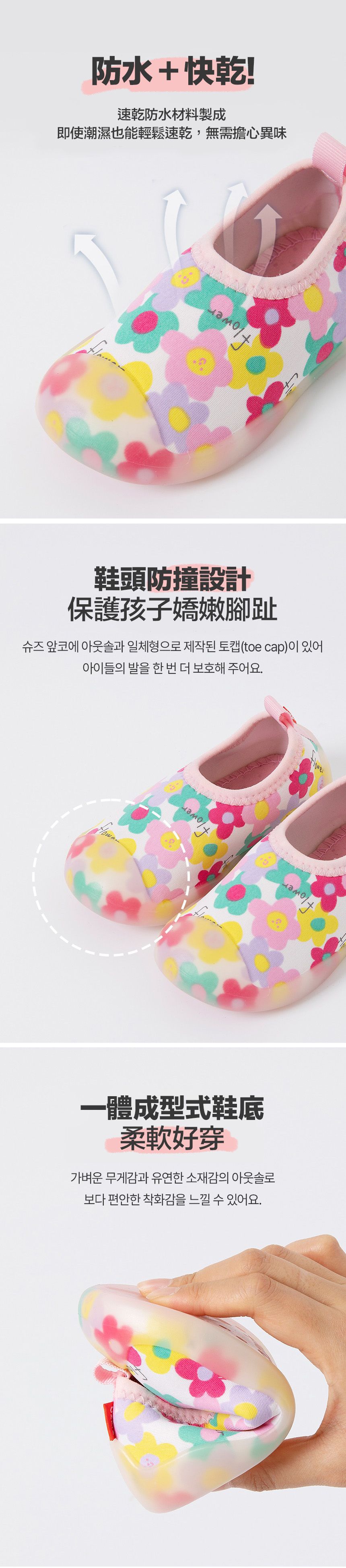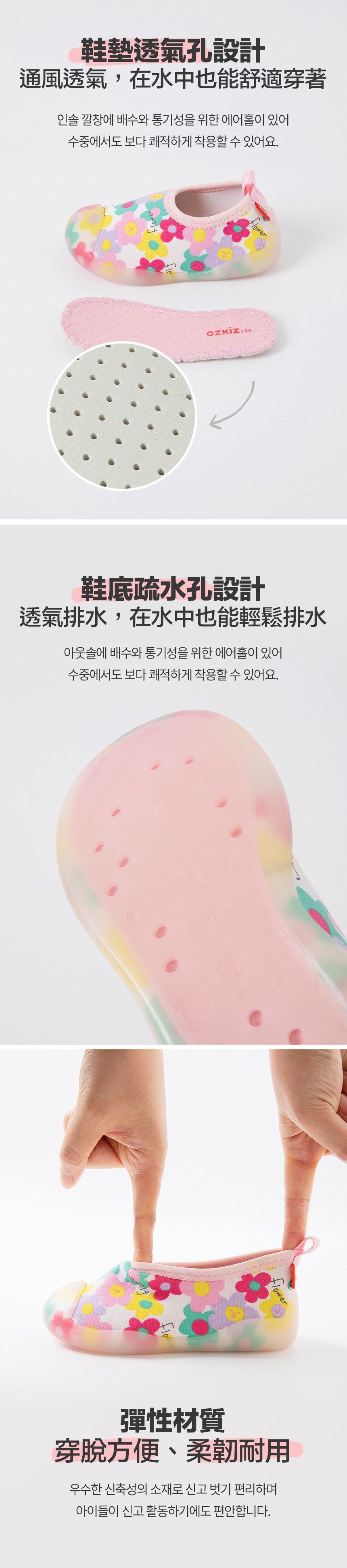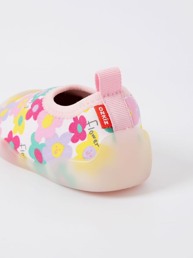 韓國 OZKIZ - 腳尖加強防護透氣快乾兒童沙灘鞋/戲水鞋-繽紛微笑花朵