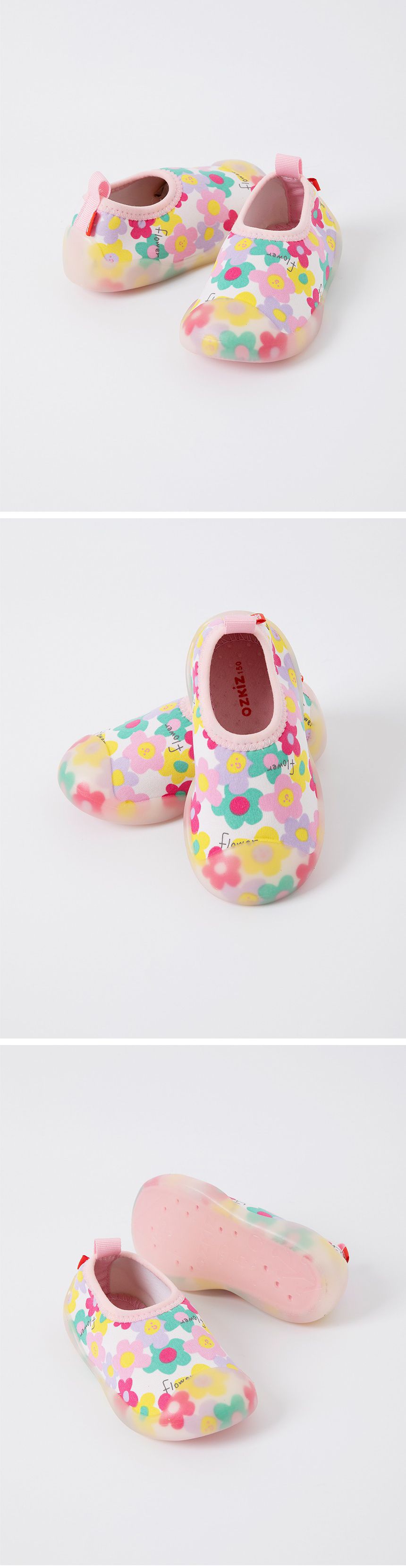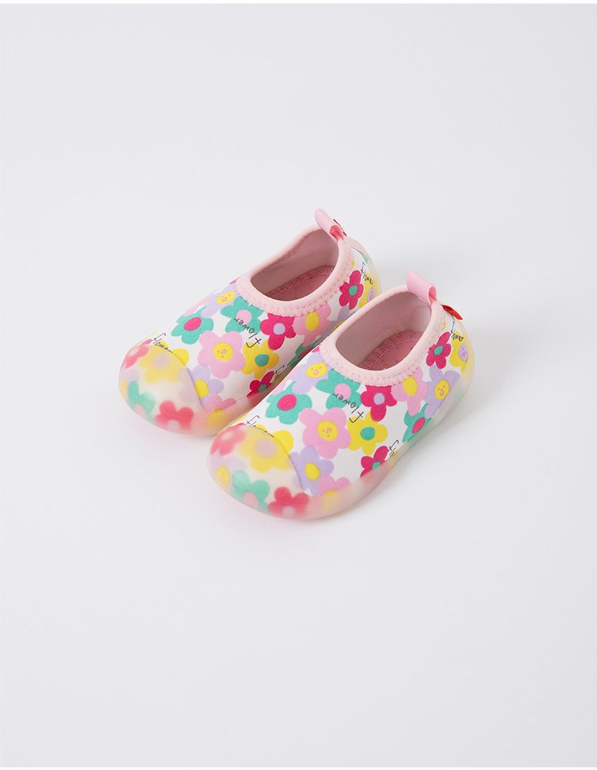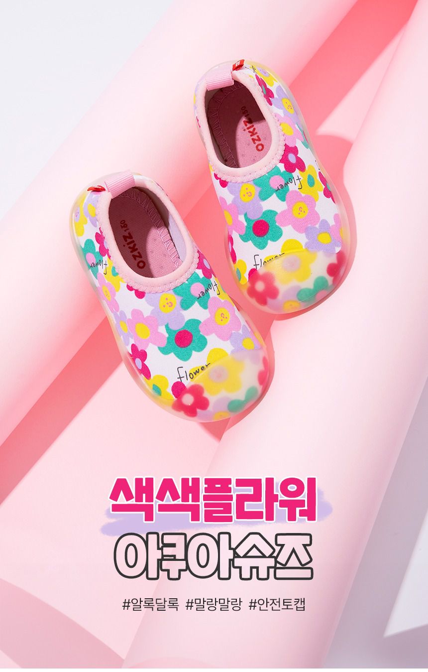 韓國 OZKIZ - 腳尖加強防護透氣快乾兒童沙灘鞋/戲水鞋-繽紛微笑花朵