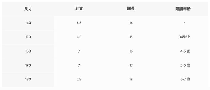 2. 每個尺寸的建議年齡、建議身高僅供參考,每位孩子發育狀況各有不同,建議參考寶貝現有的衣物/鞋子尺寸做對照。