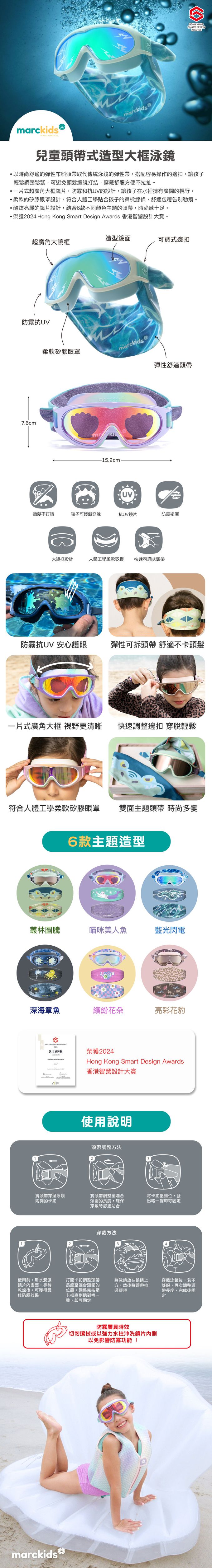 • 品名:Marckids兒童頭帶式造型大框泳鏡-叢林圖騰