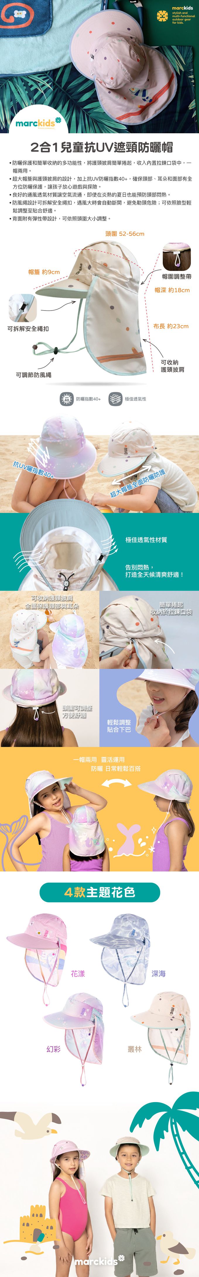 • 品名:Marckids2合1兒童抗UV遮頸防曬帽-幻彩