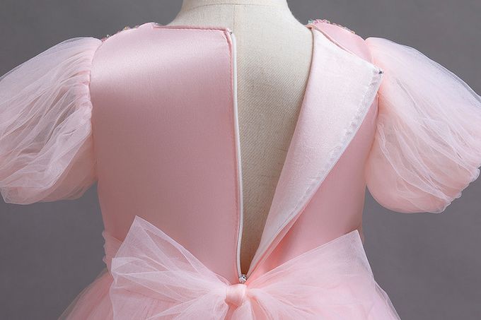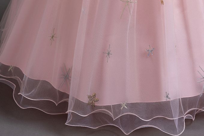 品名:柔美粉繡花亮片釘珠裝飾短袖長裙禮服