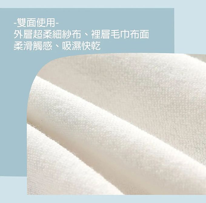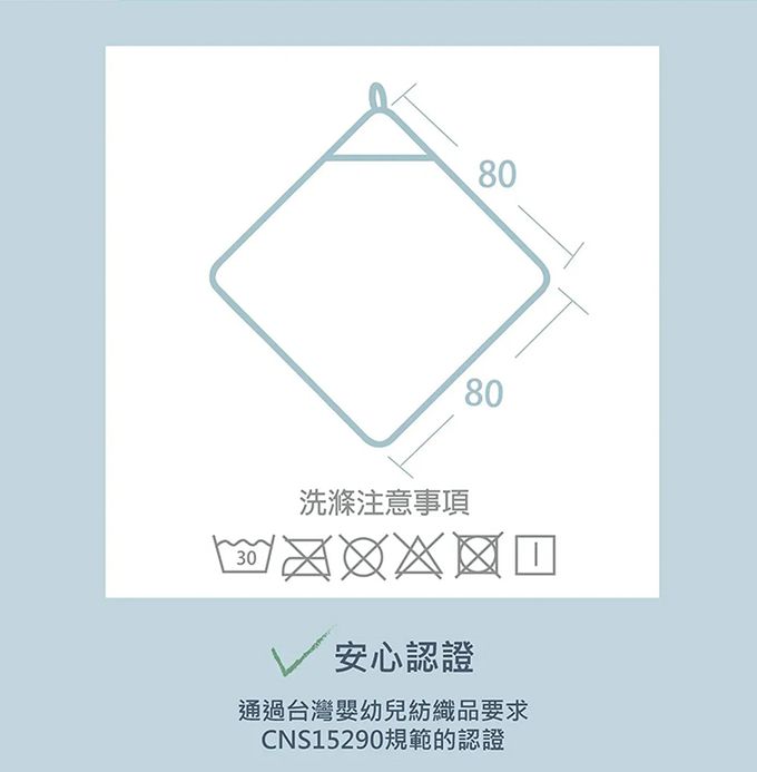 注意事項:【商品規格】 年齡:0歲以上 材質:紗布-43%嫘縈、57%棉;毛巾-49%棉、33%莫代爾、18%聚酯纖維 尺寸:80x80 cm 產地:台灣 商品檢驗標識號:M35234 【注意事項】 ● 選購時,請先確認產品尺寸是否適合。 ● 請在成人看護下使用,避免意外發生。 ● 如有破損請勿繼續使用。 ● 請勿置於潮溼、高溫環境並遠離火源。 ● 使用完畢務必清潔乾淨並保持乾燥避免孳生黴菌。 ● 避免嬰幼兒產生窒息危險,請拆卸後立即將此包裝塑膠袋銷毀或遠離嬰幼兒。 《洗滌方式》 ● 深淺衣物分開洗滌,使用中性洗劑、水溫攝氏30度以下(機洗請套洗衣袋)。 ● 勿使用漂白、螢光增白劑,不可乾洗,不可烘乾,不可熨燙。 ● 勿長時間浸泡,清洗後請盡快整平商品並吊掛晾乾。