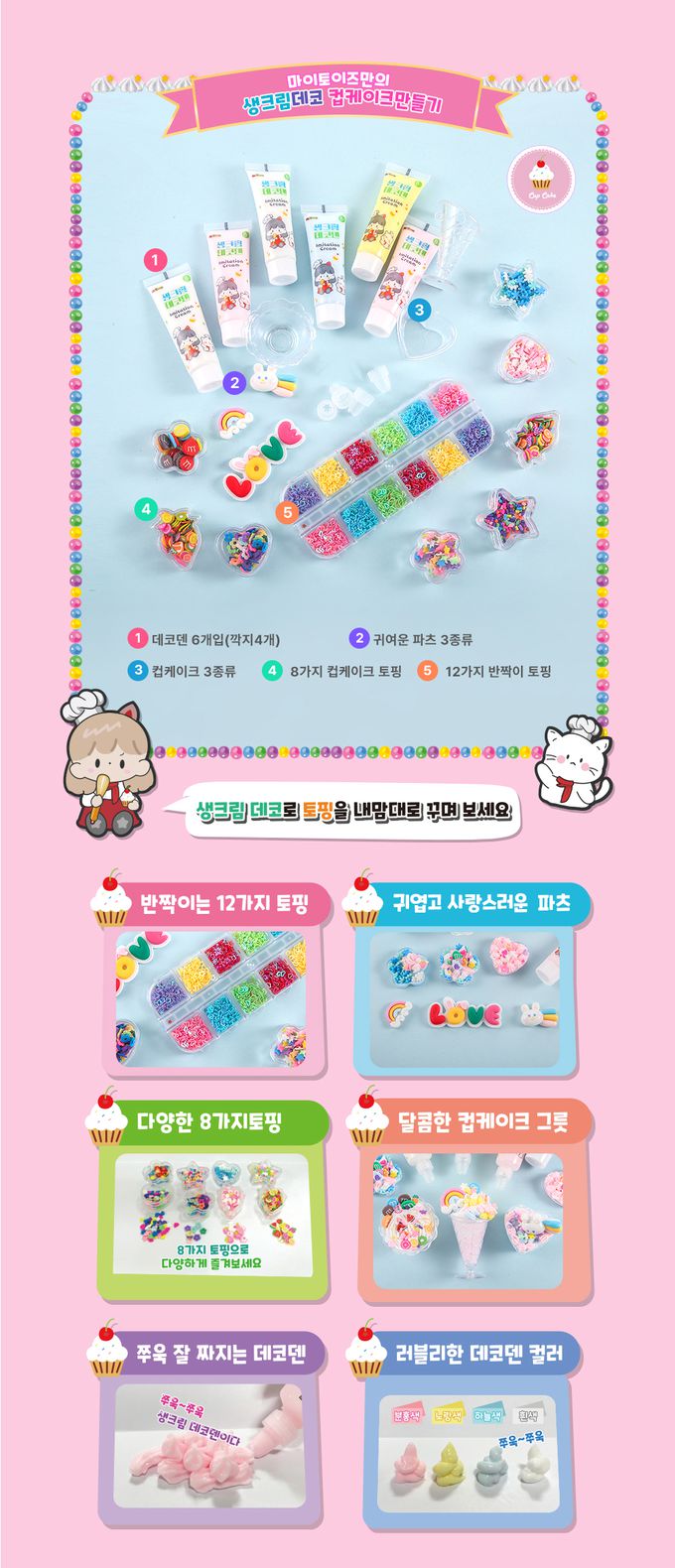 奶油膠杯子蛋糕DIY寶盒32件組-●奶油膠*6●蛋糕容器*3●亮片*12小配件*11