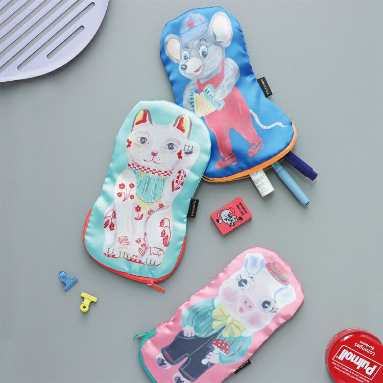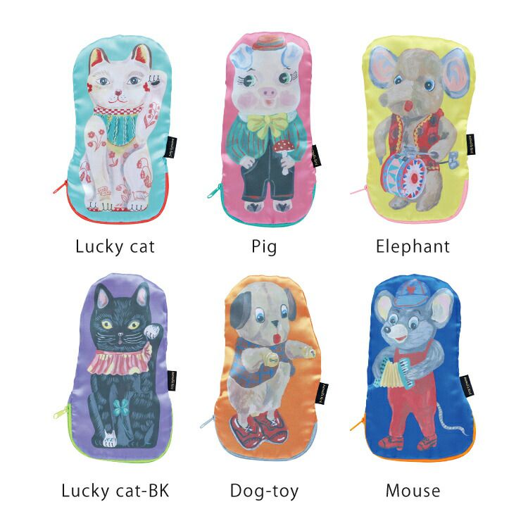 日本 8mw - 歐風童趣印花緞面筆袋-大象-黃