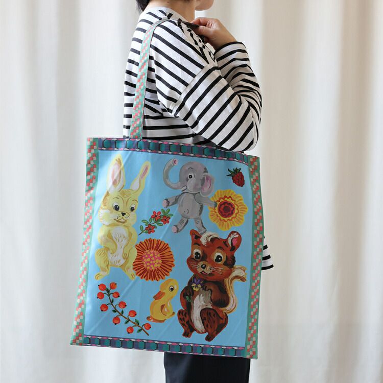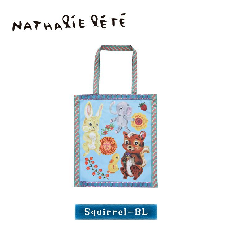 日本 8mw - 歐風童趣印花托特包/可折疊購物袋-松鼠-水藍