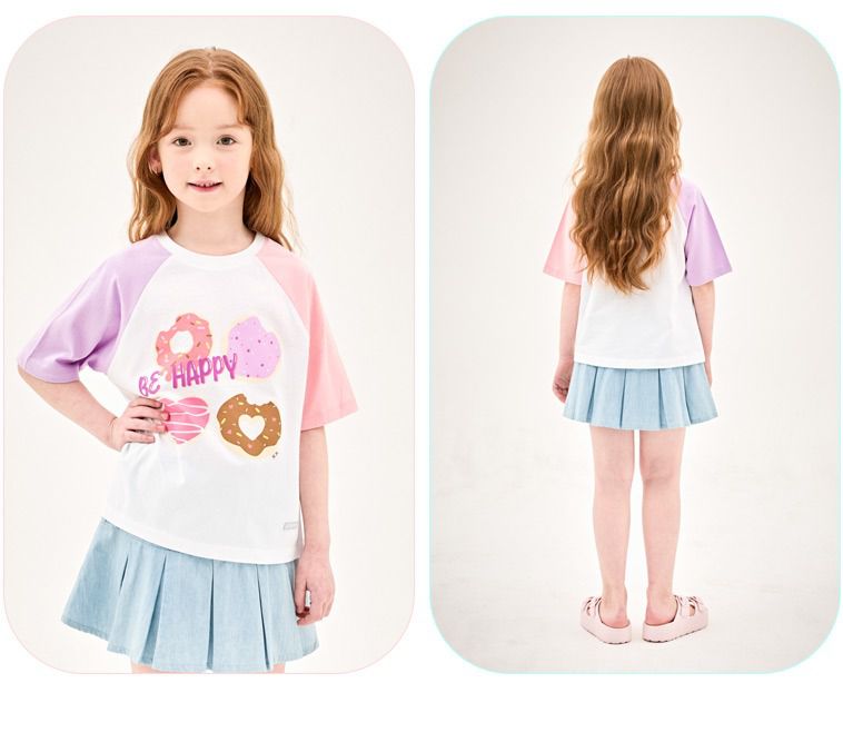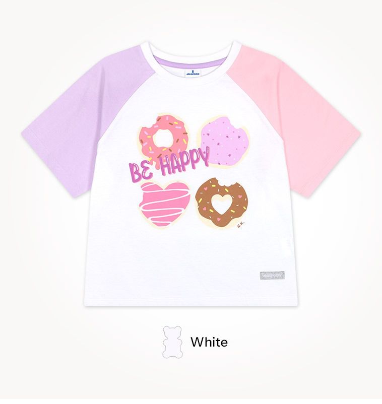 韓國 Jelispoon - 可口甜甜圈短袖上衣-紫X粉