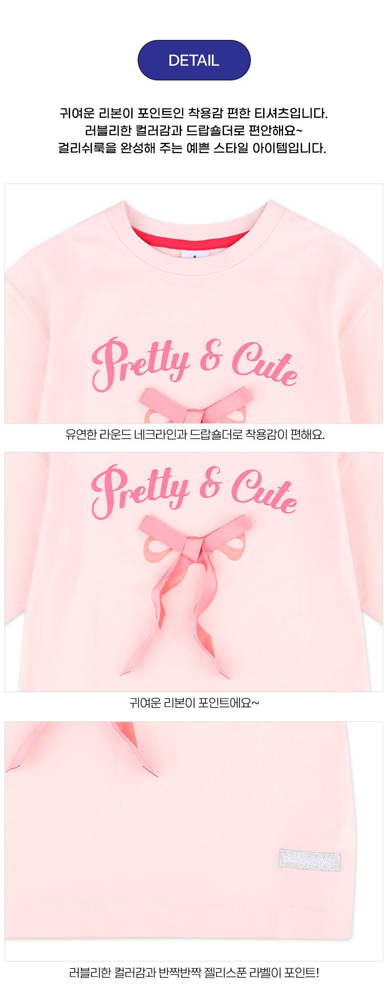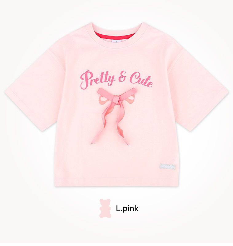 韓國 Jelispoon - 浪漫緞帶裝飾短袖上衣-粉