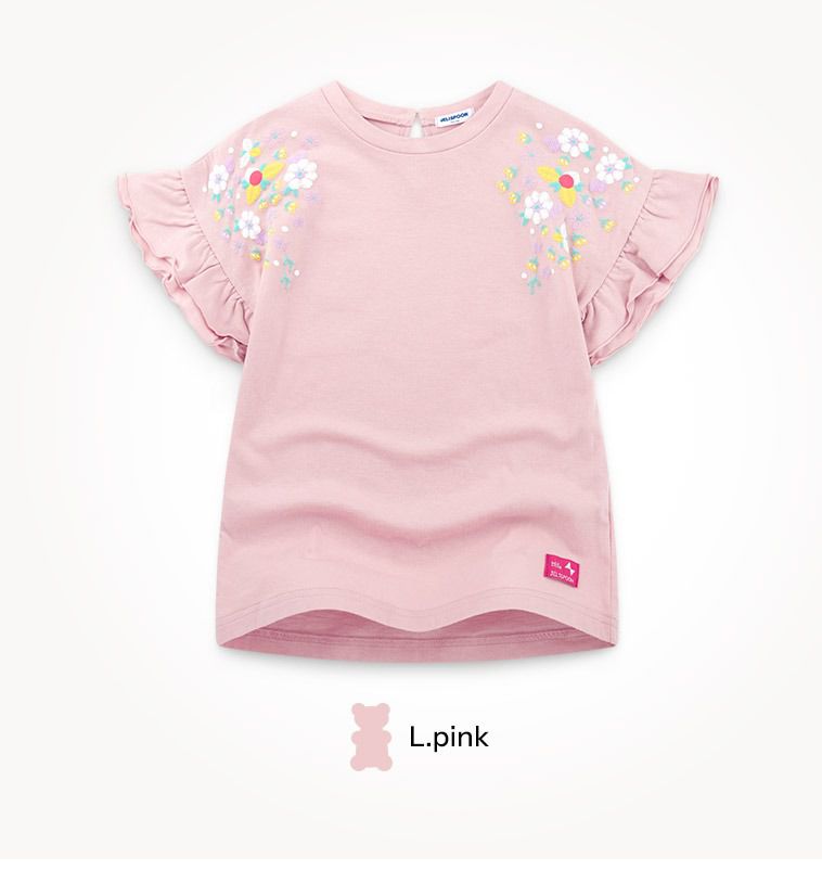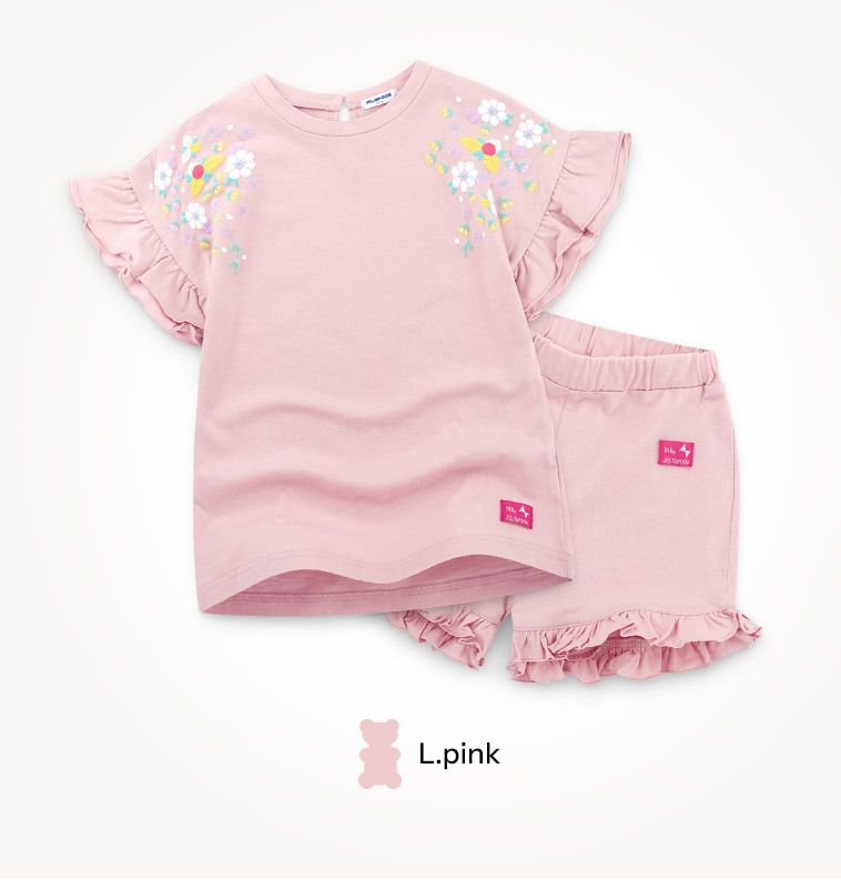 韓國 Jelispoon - 浪漫繡花點綴荷葉袖套裝-淺粉