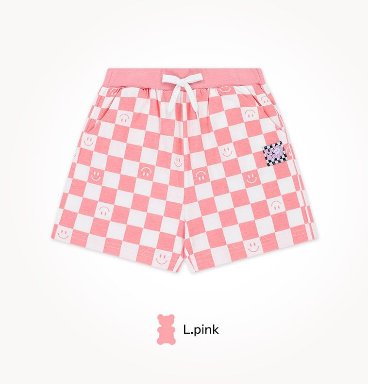 韓國 Jelispoon - 笑臉棋盤格短袖套裝-粉
