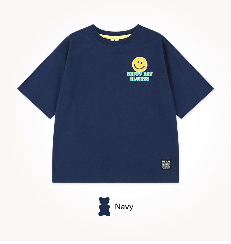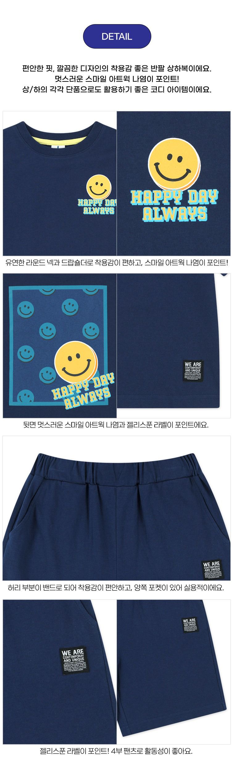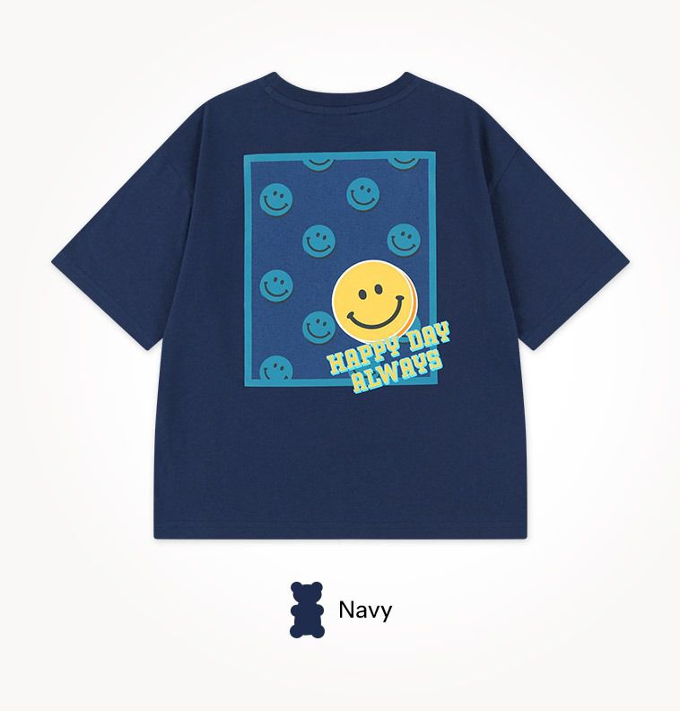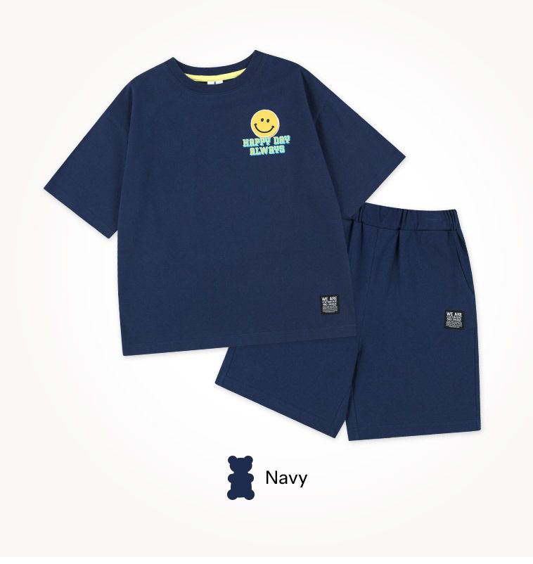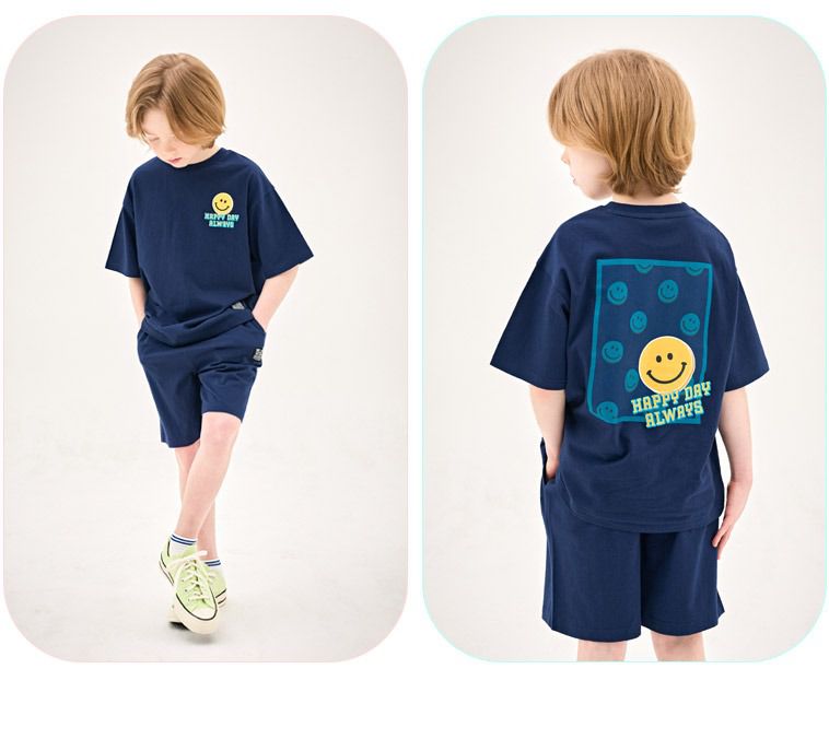 韓國 Jelispoon - 背後笑臉框框印短袖套裝-海軍藍
