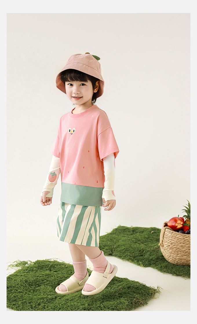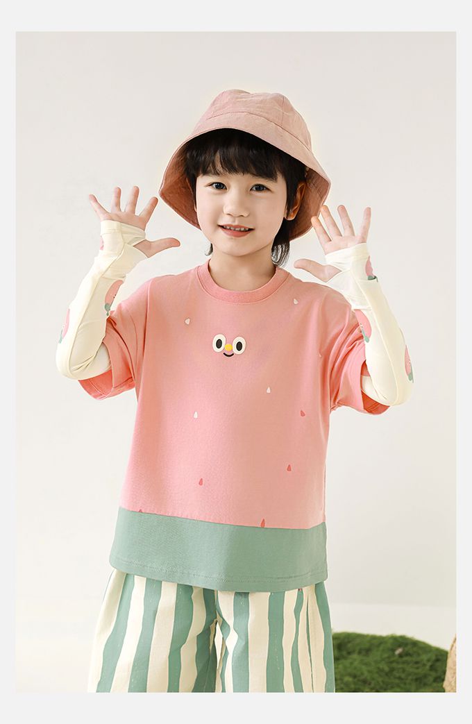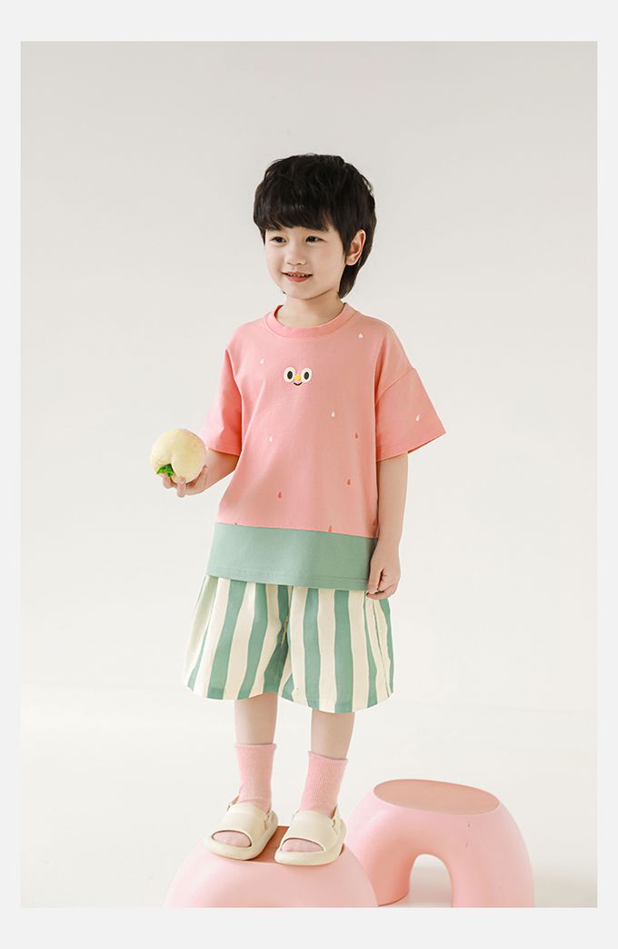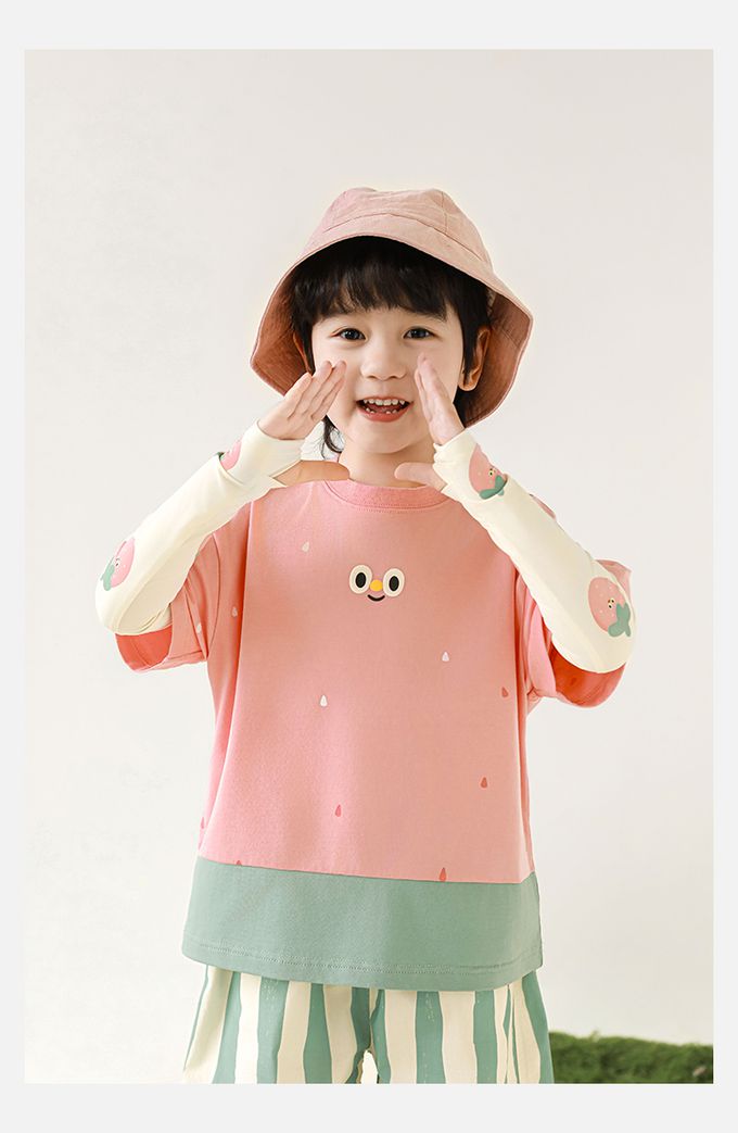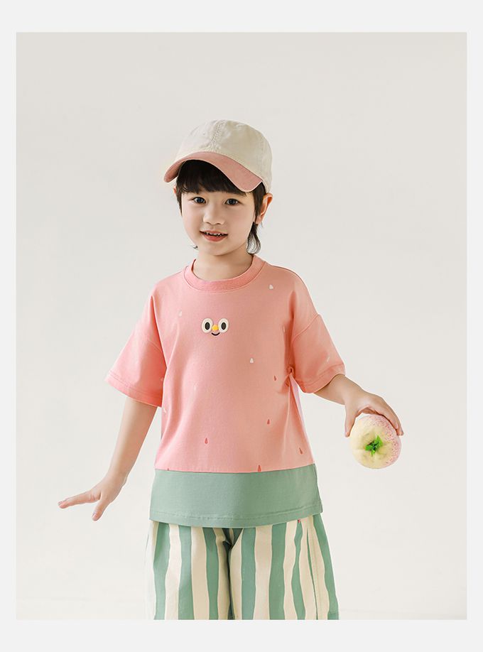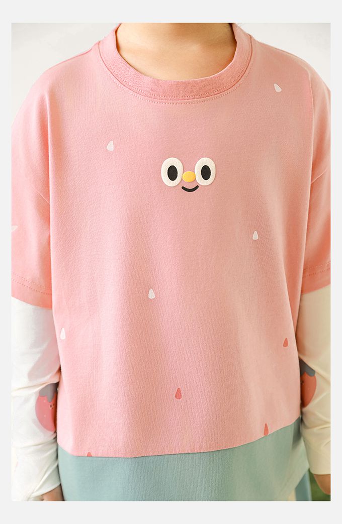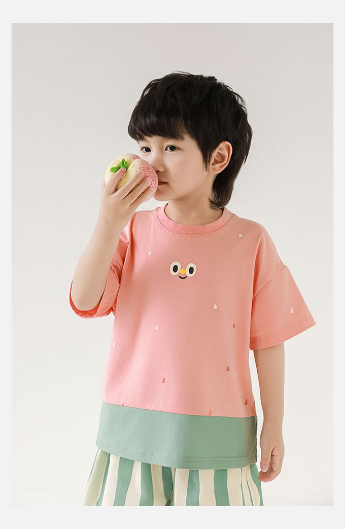 TONGMO - 圓領水果撞色短袖上衣-表情印花-葡萄