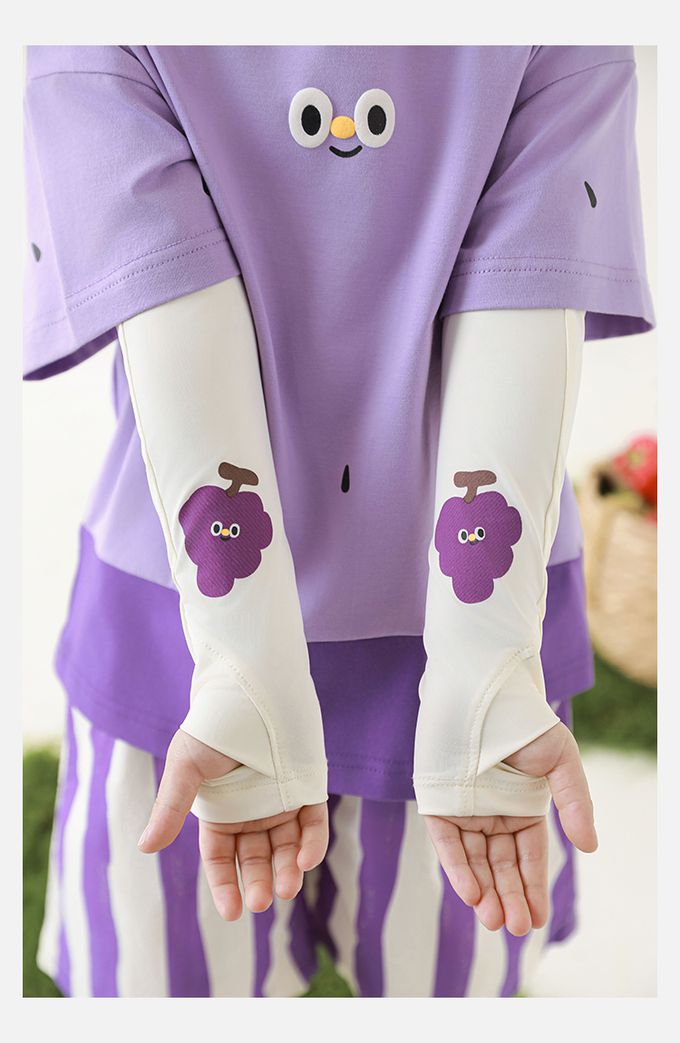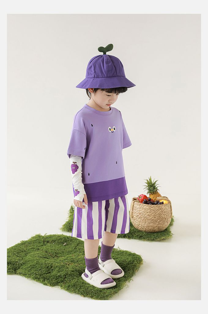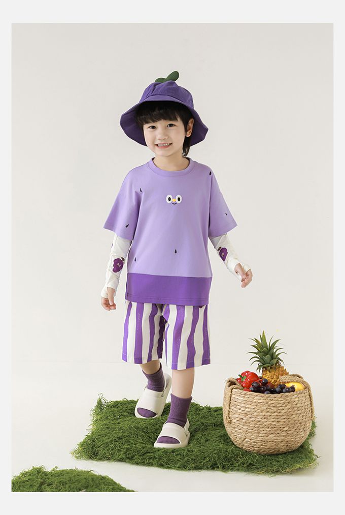 圓領水果撞色短袖上衣-表情印花-葡萄