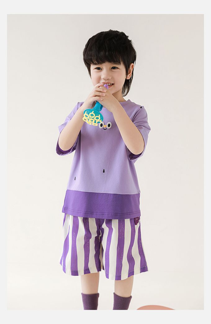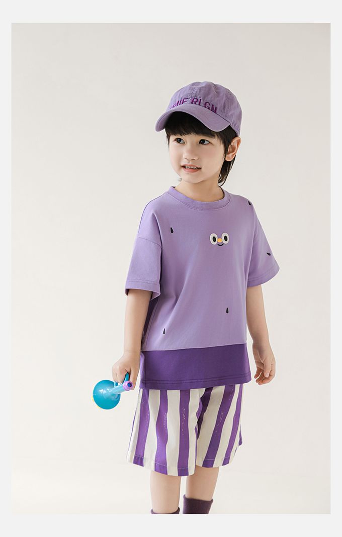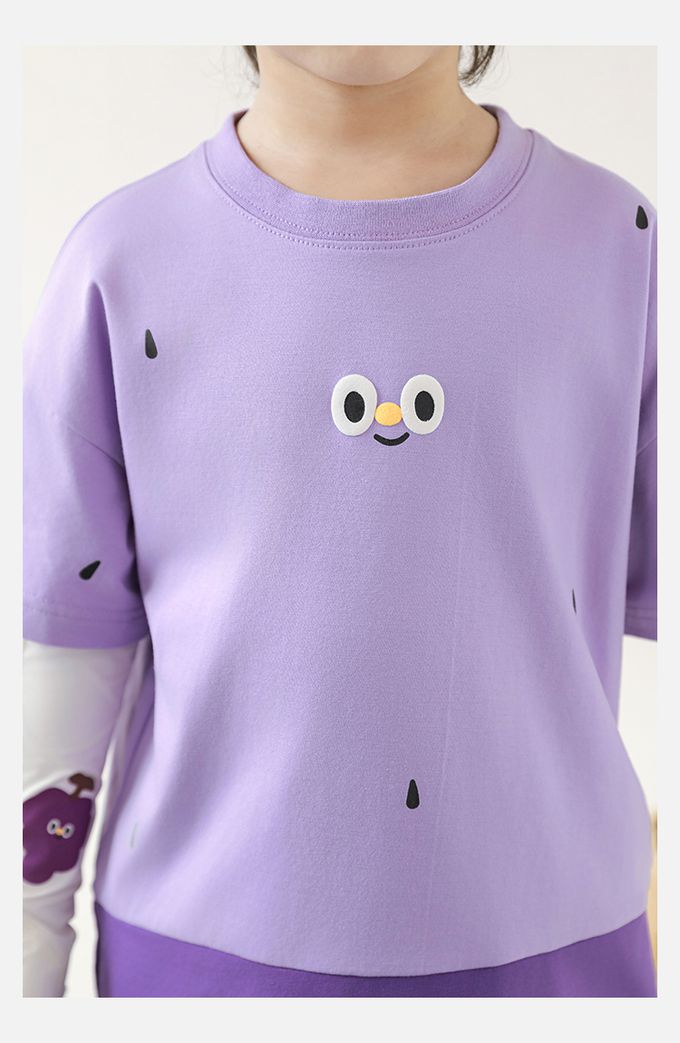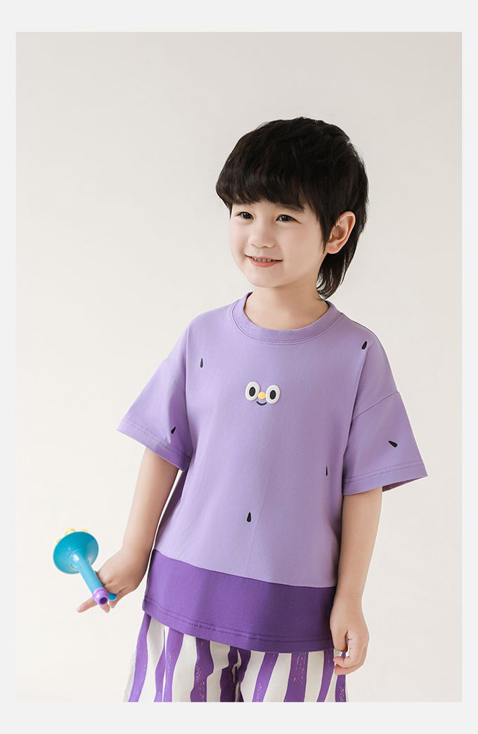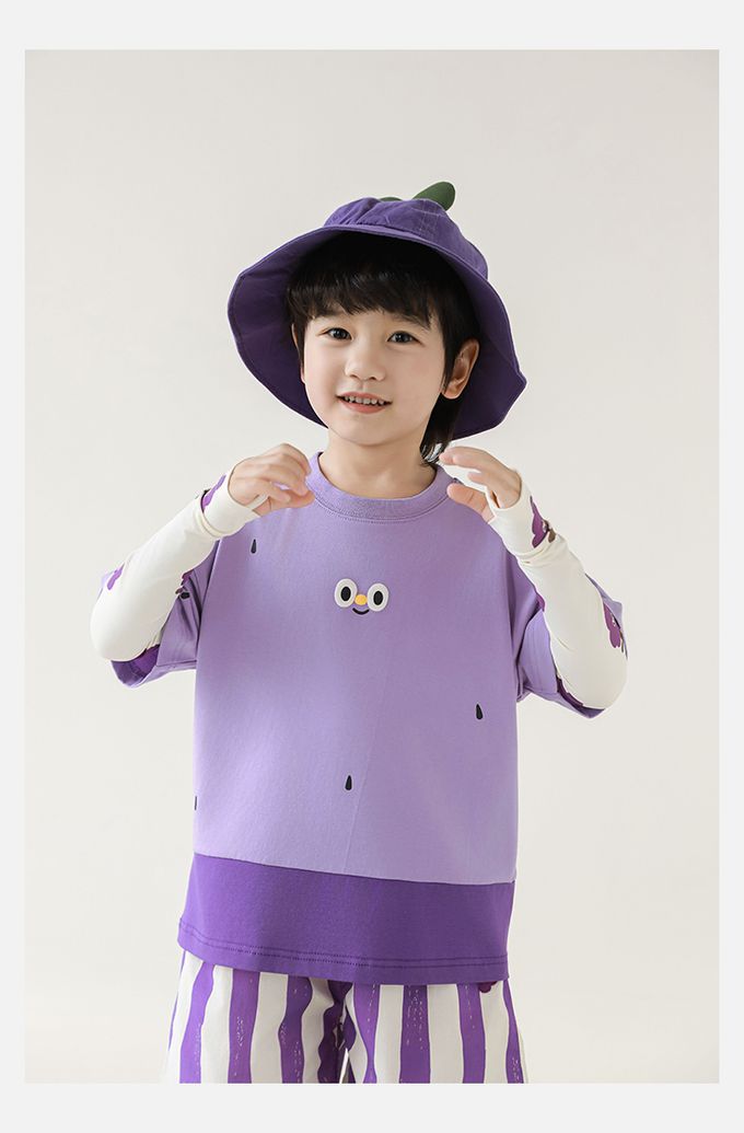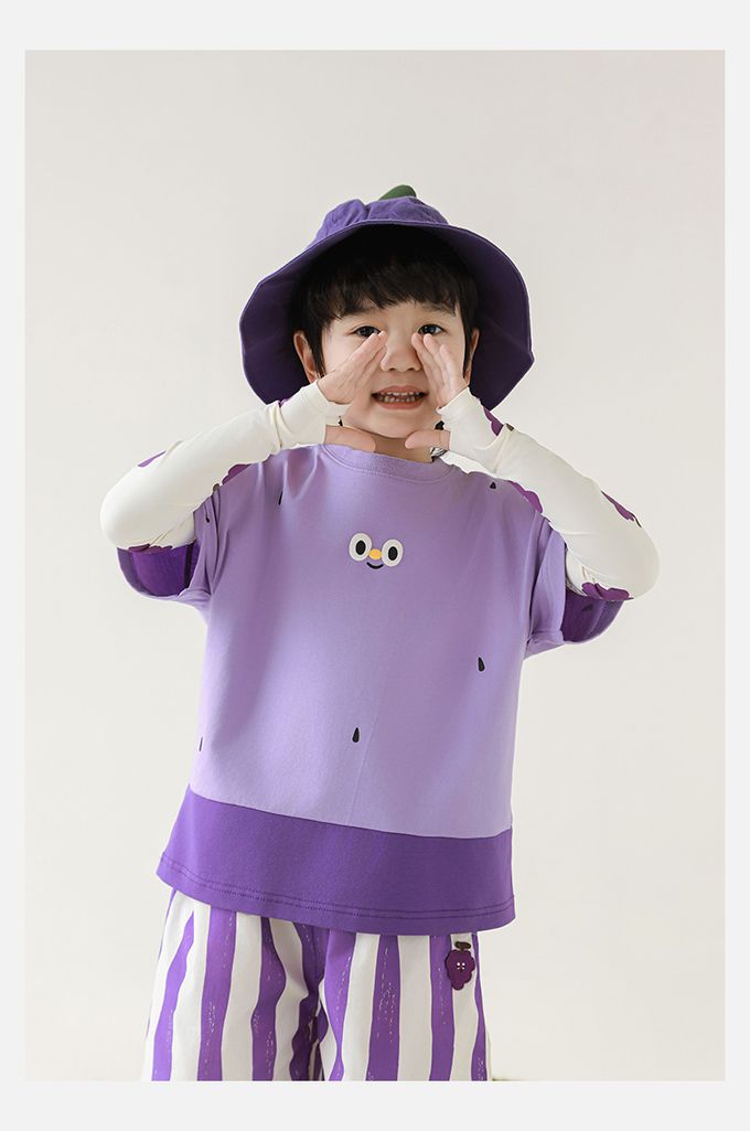 TONGMO - 圓領水果撞色短袖上衣-表情印花-葡萄